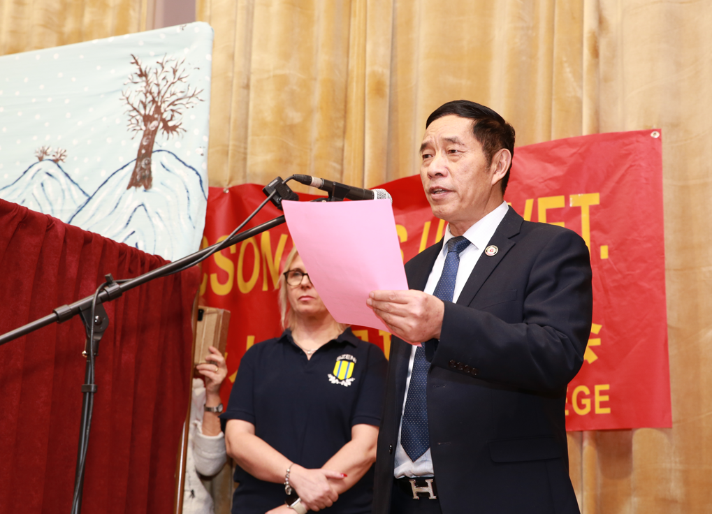 匈牙利华侨华人社团联合总会(匈华总会)会长余美名致辞说,扶危济困、乐善好施是中华名族的传统美德,是社会道德文明建设的重要内容,也是构建和谐社会的重要组成部分。关注弱势群体是全社会共同的责任,希望通过今天这样的活动,能够建立起一座爱心之桥、能够推动社会充分认知和关爱、扶助智障群体的重要意义,凝聚更多爱心人士热情的力量,将对孩子们的帮扶工作长效化、社会化,更是希望他们在政府及社会各界人士关怀下,巩固热爱自己的祖国、热爱自己的家乡,立志成才的远大理想。贫困中不失志向、逆境中扬起风帆,自强不息、努力拼搏,将来成为社会和国家的有用之才,不辜负整个和社会各界的殷切希望。