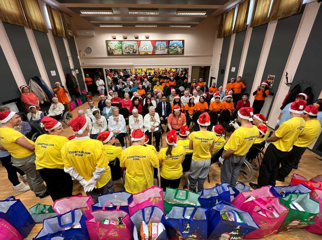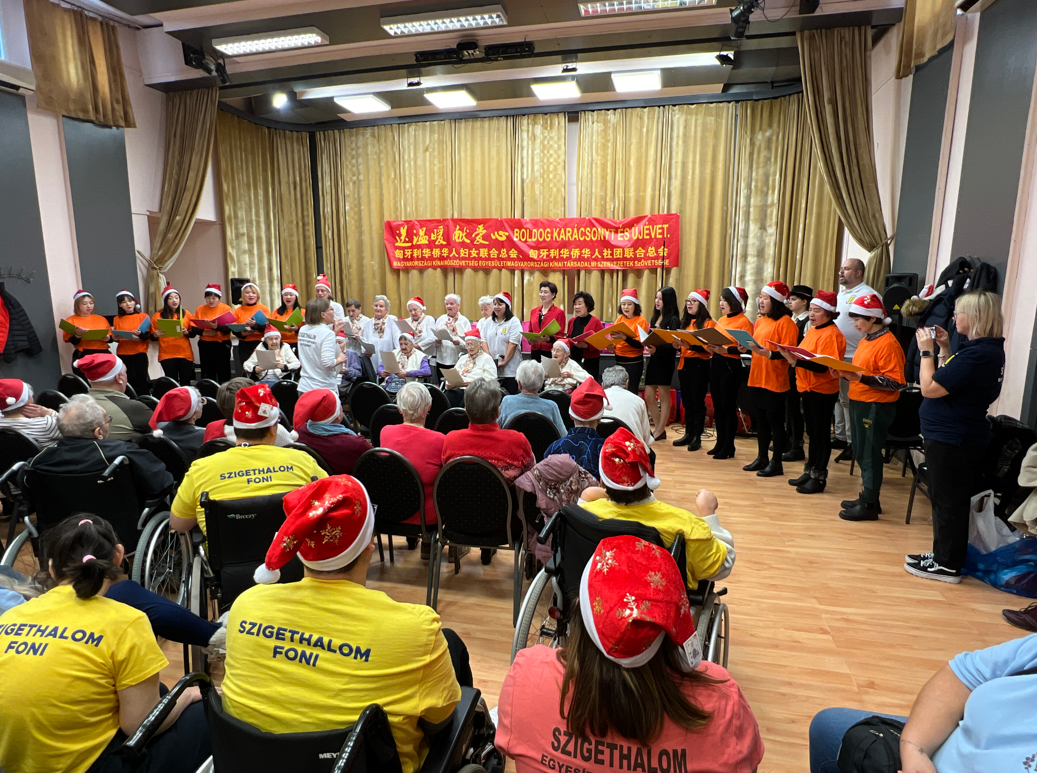 新导报讯:2023年12月19日,匈牙利华侨华人妇女联合总会(匈华妇总会)、匈牙利华侨华人社团联合总会(匈华总会),联合举办向距离首都布达佩斯30公里的Szigethalom市福利院送温暖献爱心活动,为那里的老人、残疾人士、智障儿童们带去了精美、丰富的圣诞和新年礼物。双方还分别表演了精心准备的文艺节目,共同合唱了歌曲《平安夜》。