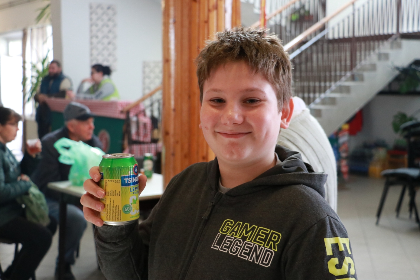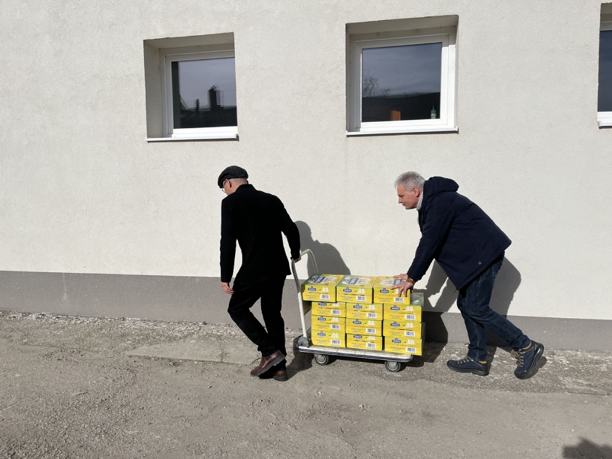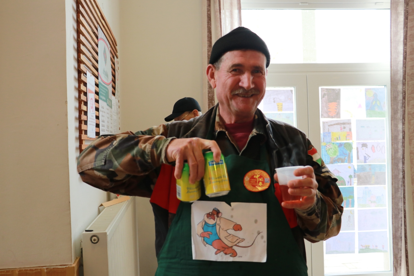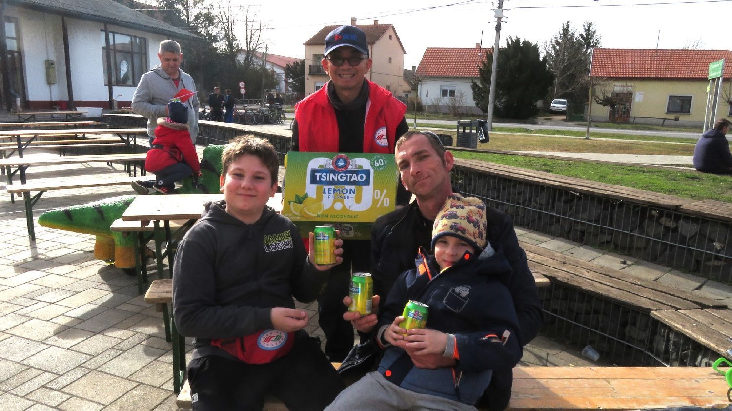 谢赖盖耶什市市长Horváth Sándor品尝无酒精青岛啤酒。
