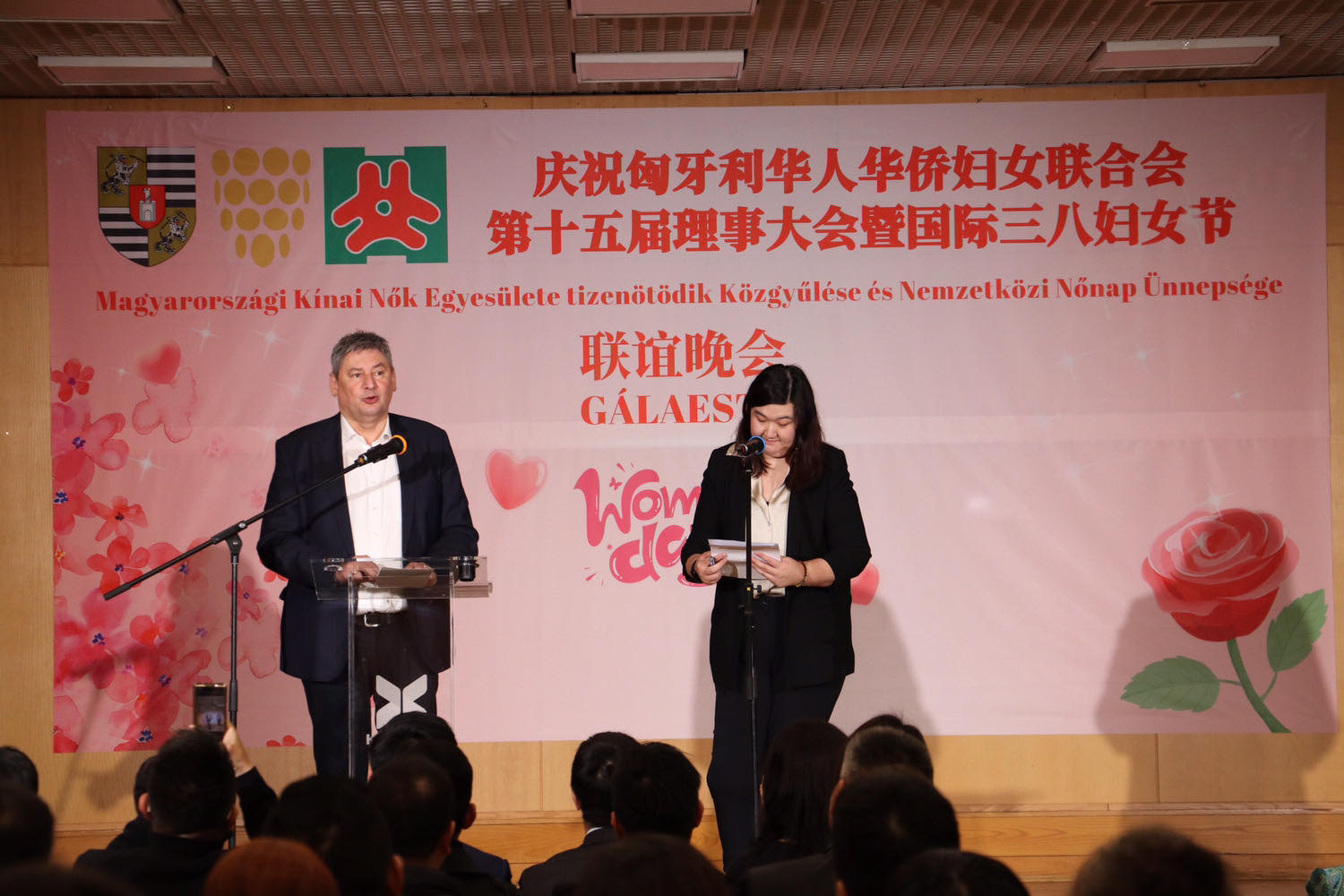 今晚,我们欢聚一堂,参加由布达佩斯第十区区政府、匈牙利妇女儿童健康专业工作者协会、匈牙利华人华侨妇女联合会,三家联合举办的“匈牙利华人华侨妇女联合会第十五届理事会暨三八国际妇女节”联谊活动。