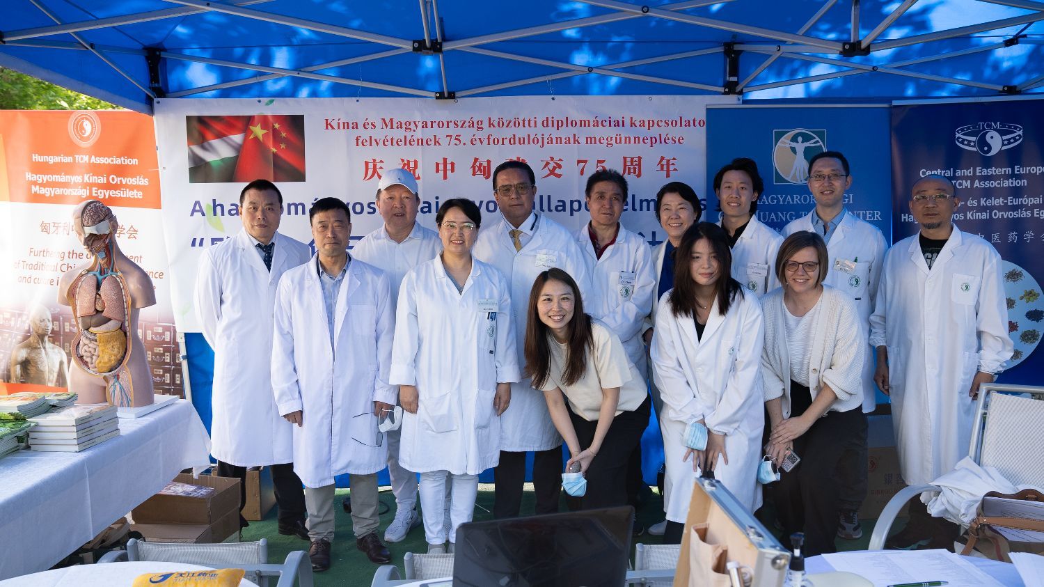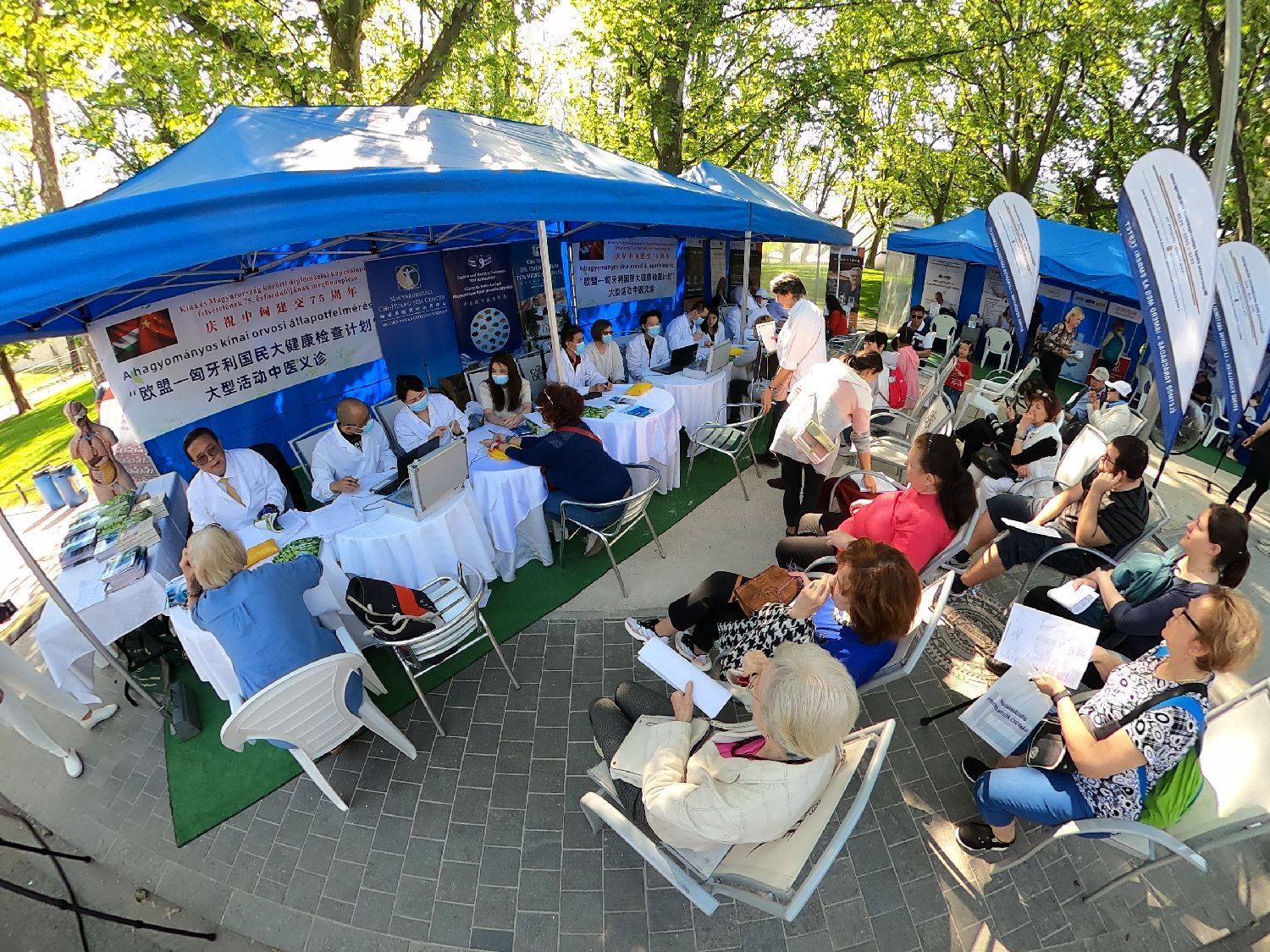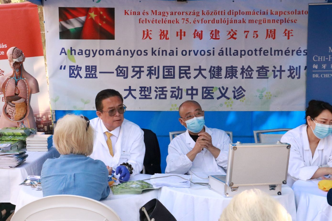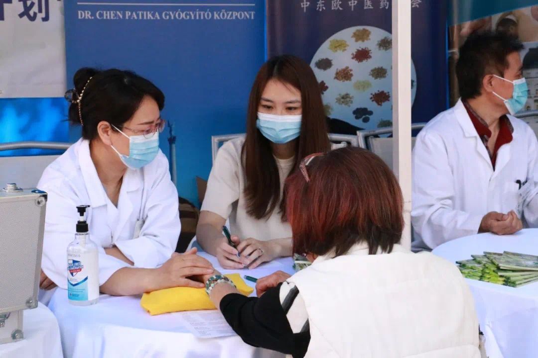 参加此次大型义诊活动的中东欧中医药学会会长陈震博士、执行会长修卫博士、中方秘书长王帆博士、副秘书长杨镇珲博士;匈牙利岐黄中医药中心甘肃省卫健委的外派专家张海芳主任医师、陈魁主任医师、刘怡副主任医师、黄振荣医师;匈牙利中医药学会几位创会元老:执行会长王伟迪主任医师、监事长邢启宏主任医师、秘书长陈震主任医师及副会长邵百军主任医师等,也参加了此次英雄广场的大健康检查中医药主场大型义诊活动。