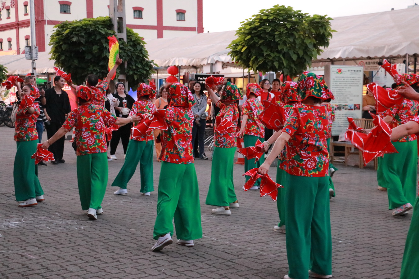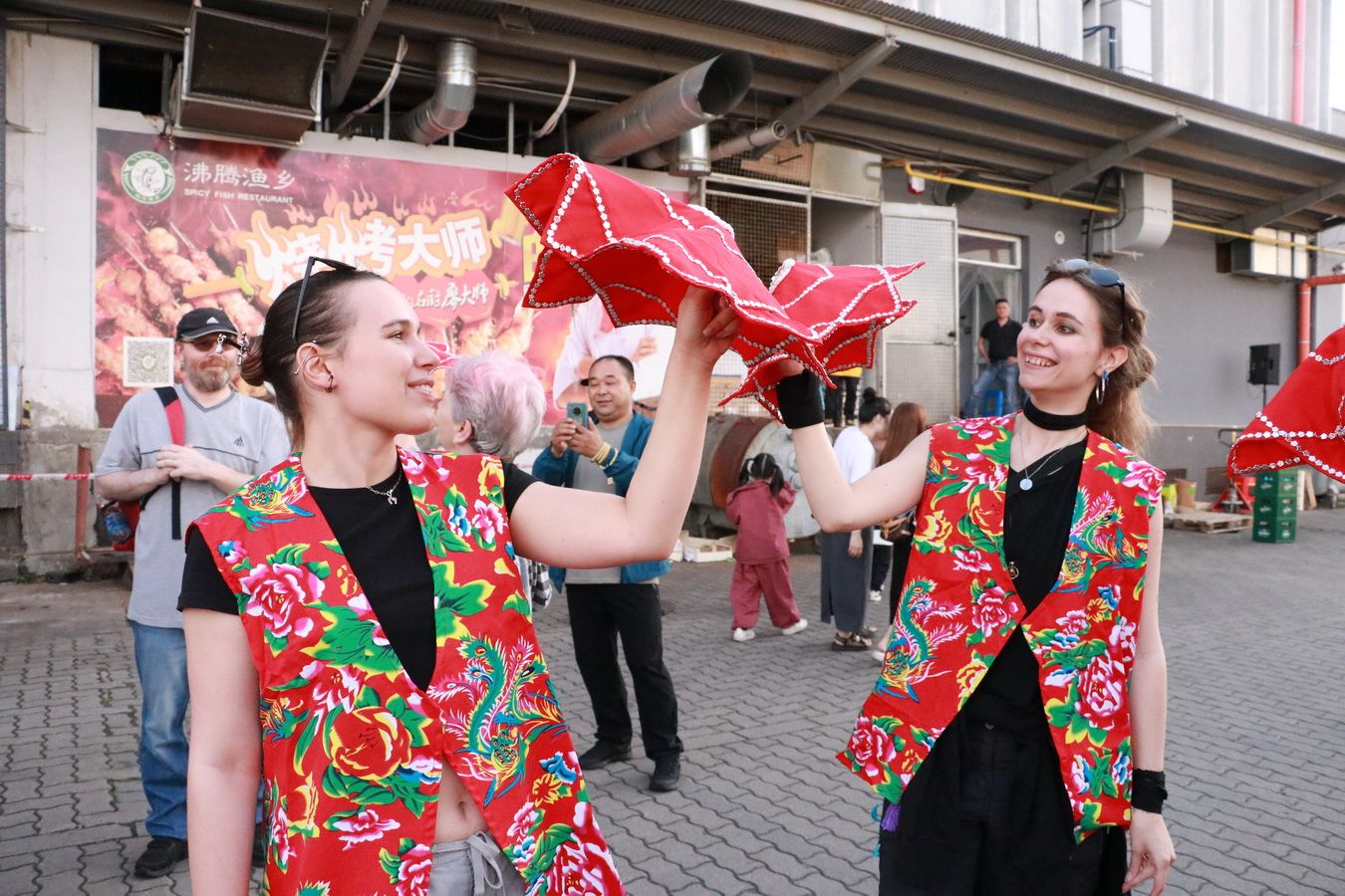 在这场别具一格的趣味活动上,不仅有跑龙舟和蹴鞠等传统体育项目,还有一项特别引人注目的活动——穿着东北大花袄的扭秧歌表演。这种服装以其鲜艳的色彩和独特的设计,成为了现场的一道亮丽风景线。