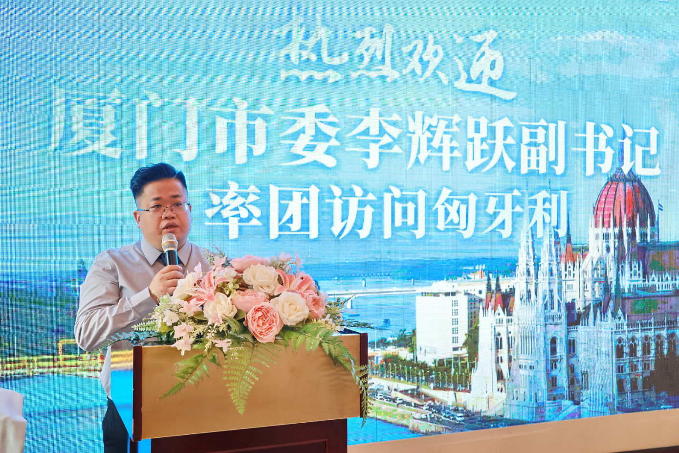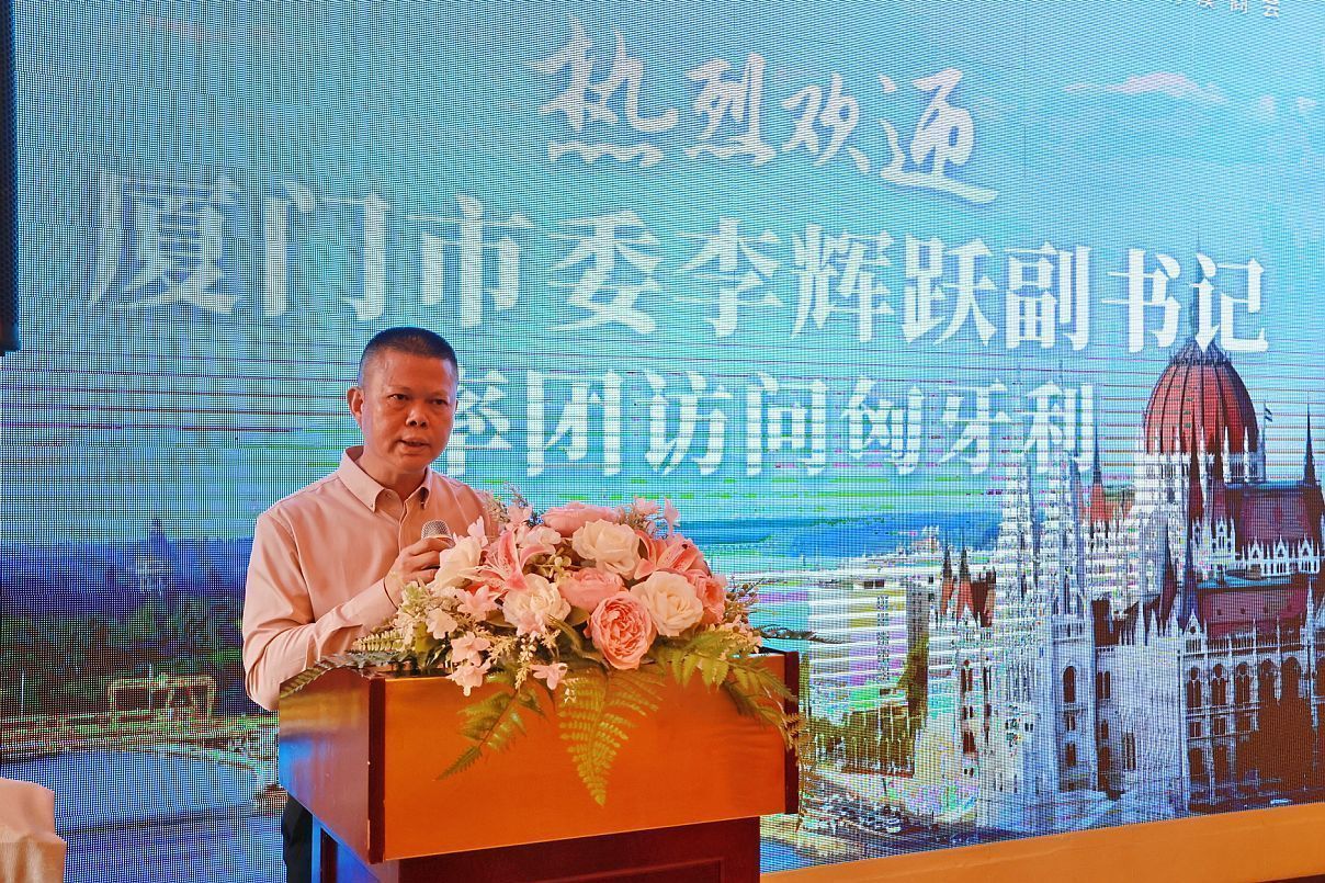 匈牙利福建商会执行会长、匈牙利美维利亚集团创始人陈世全在欢迎会上致词。他说,厦门作为祖国东南沿海的重要门户城市,以其独特的区位优势、深厚的文化底蕴和蓬勃发展的经济贸易而闻名于世。此次李辉跃副书记,率团访问匈牙利,不仅是对厦门与匈牙利发展关系的高度重视,更是对我们旅居匈牙利福建华侨华人的巨大鼓舞。相信此次访问,既是一次增进了解、加深友谊的机会,也是一次探讨合作、共谋发展的契机。为推动双方在各领域的共同发展带来全新动能。