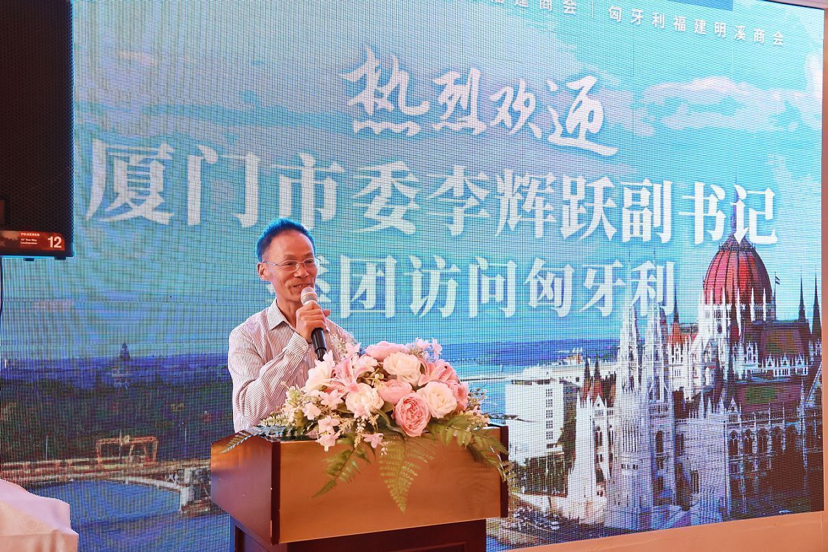 厦门市委副书记李辉跃致词,对在匈牙利能见到众多事业有成的闽籍乡亲、企业家、侨领表示感到特别的温馨和亲切并致以谢意;对大家在异国他乡创业发展、通过乡会团结乡亲、服务乡亲,积极融入当地社会的同时也为中、匈两国友好作出的贡献致以敬意。