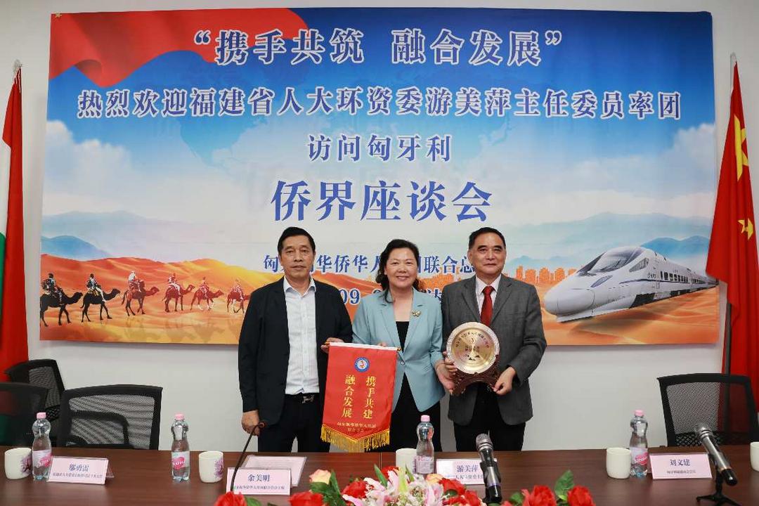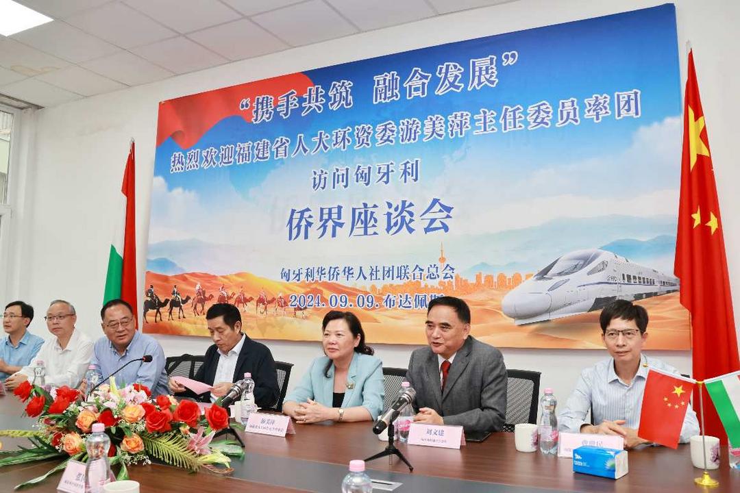 匈牙利《欧洲论坛》报9月10日报道,9月9日福建省人大环资委主任委员游美萍、福建省人大常委会监察司法工委主任邬勇雷、省人大常委会预算工委副主任曹世明、省人大常委会侨(台)工委副主任叶勇鹏、省人大常委会代表工委二级巡视员林镇毅、省人大常委会环城工委秘书处处长余兆刚一行访问匈牙利,在布达佩斯匈华总会会馆与余美明、刘文建、曾玉根、张国治、向代英、卢秀钦、尤灯塔、单自力、林良崇、汤玉清、周丽娟等匈牙利华侨华人社团联合总会、匈牙利福建商会侨领举行座谈会。