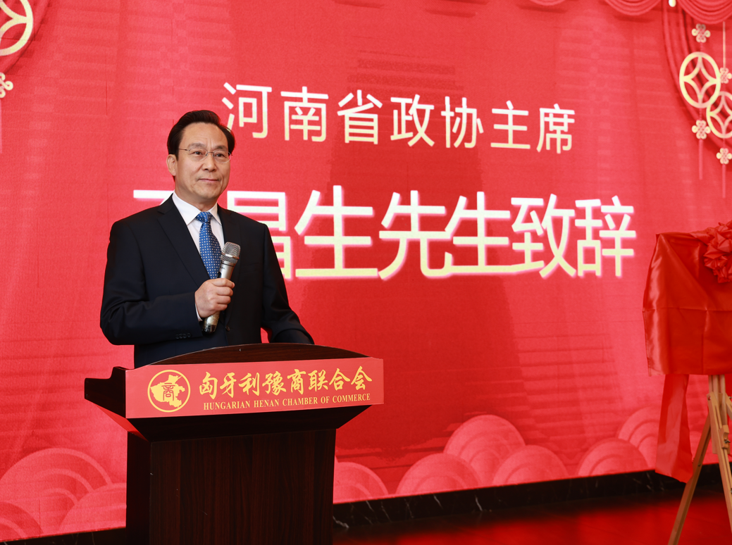 河南省政协主席孔昌生先生在致辞中表示,今日有幸为匈牙利豫商联合会揭牌,我谨代表家乡向在座的各位致以最诚挚的问候。豫商联合会不仅是在匈牙利河南人的温馨家园,更是我们团结协作、凝聚力量的平台。我们以此次揭牌为新的起点,充分发挥商会的组织功能,加强与家乡的紧密联系,与匈牙利的社团建立更深层次的合作。让我们相互支持,共同取暖,携手前行。
