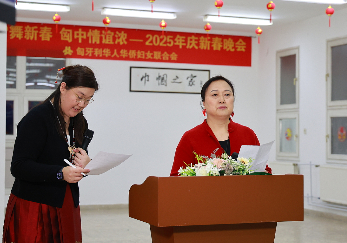 匈牙利华人华侨妇女联合会执行会长张丽梅和妇联姐妹李海新主持晚会。
