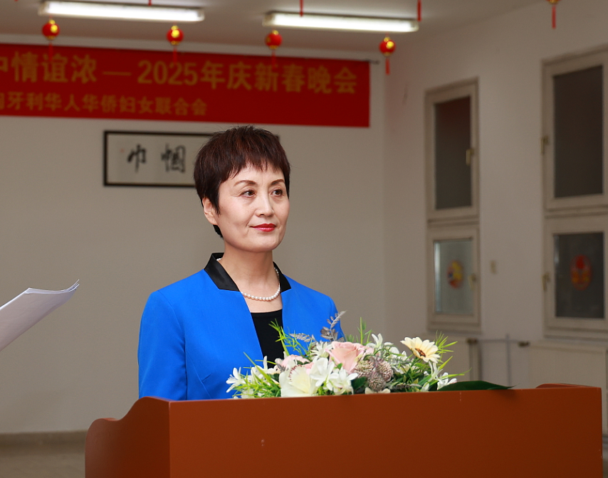 匈牙利华人华侨妇女联合会于晶女士在祝辞中表示,首先特别感谢中国驻匈牙利大使馆对华人华侨的关怀,长期以来驻匈使馆各级领导对我们妇联联合会的工作给予大力指导和肯定,以及领侨处武秀梅和朱晓宇领事亲自给妇联联合会送来中国大使馆暖心包。
