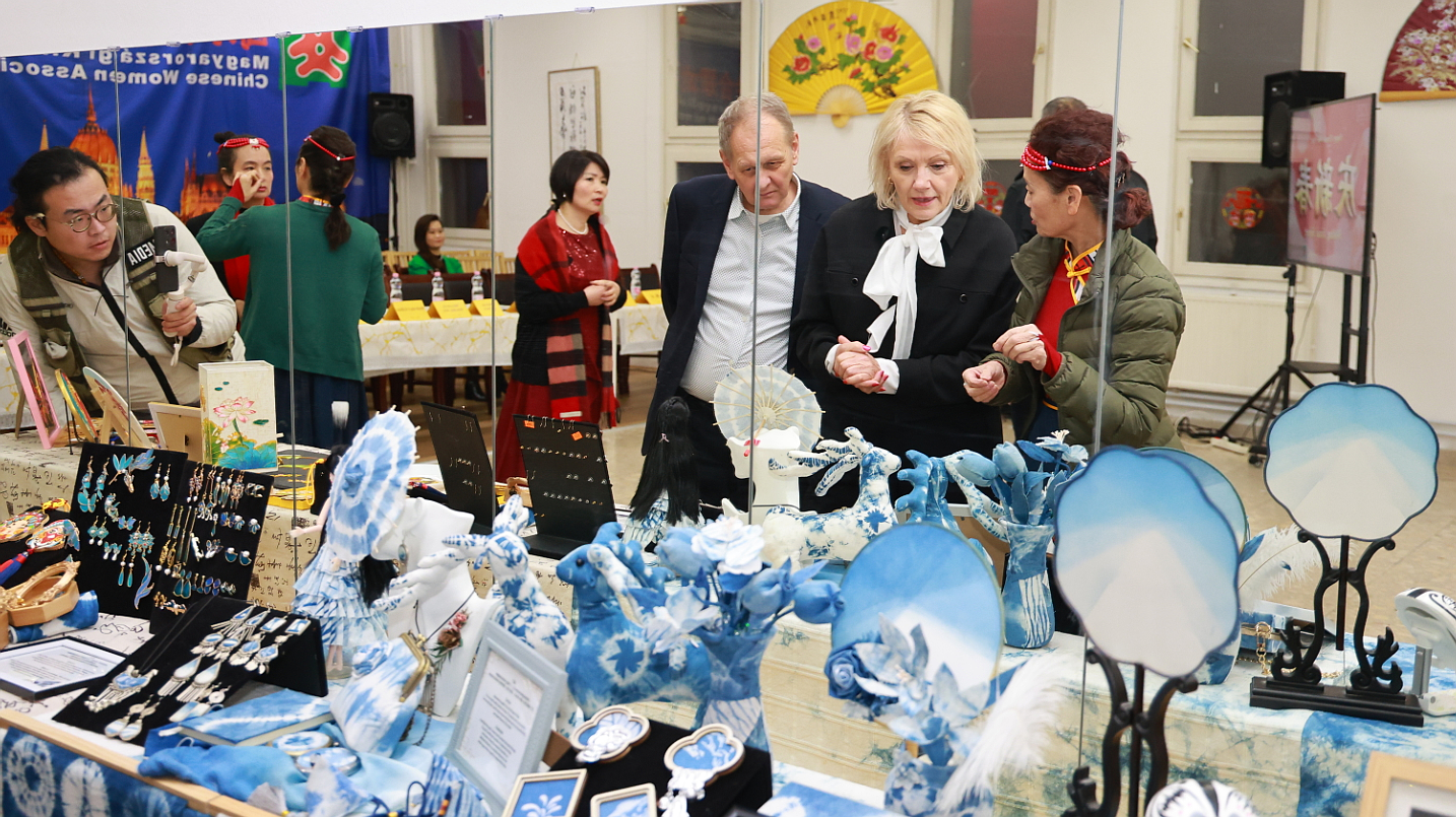 晚会现场由妇联姐妹李海华老师及其团队展示的中国传统非物质文化遗产技艺令人称赞。无论是大漆扇制作、剪纸、活字印刷这类可以亲身参与的手工技艺体验项目,还是用于静态展示的金箔画、扎染、景泰蓝、点翠等工艺都让匈牙利朋友们感受到来自东方的传统美学。