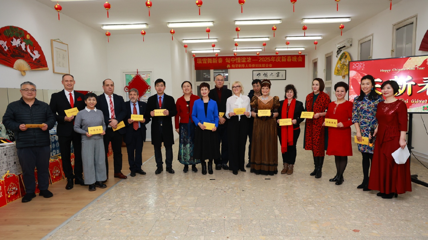新导报讯:2025年1月15日晚,雪后初霁,朔风凛冽。布达佩斯唐人街商贸中心的匈牙利华人华侨妇女联合会会馆内却温暖如春、热闹非凡。恰逢中国春节来临之际,匈牙利华人华侨妇女联合会举办了“瑞雪舞新春匈中情意浓——2025庆新春晚会”。