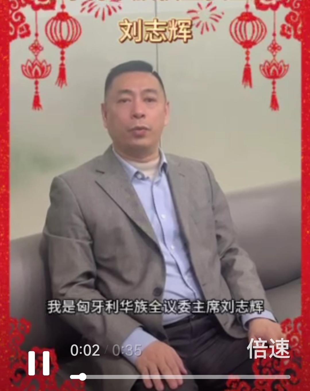 匈华权益委主席刘志辉通过视频连线向匈牙利华商致新春祝福