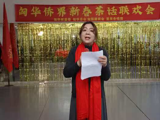 最后,周丽娟代表匈牙利福建商会,祝今天的新春茶话联欢会演出获圆满成功!恭喜大家蛇年发财!