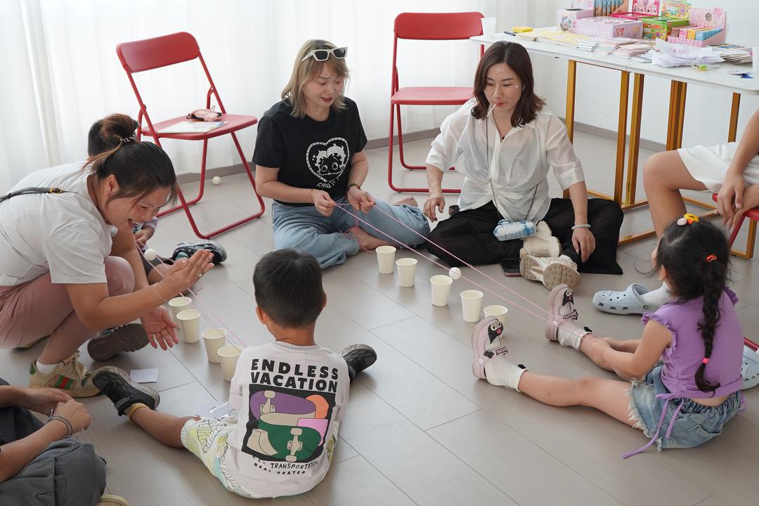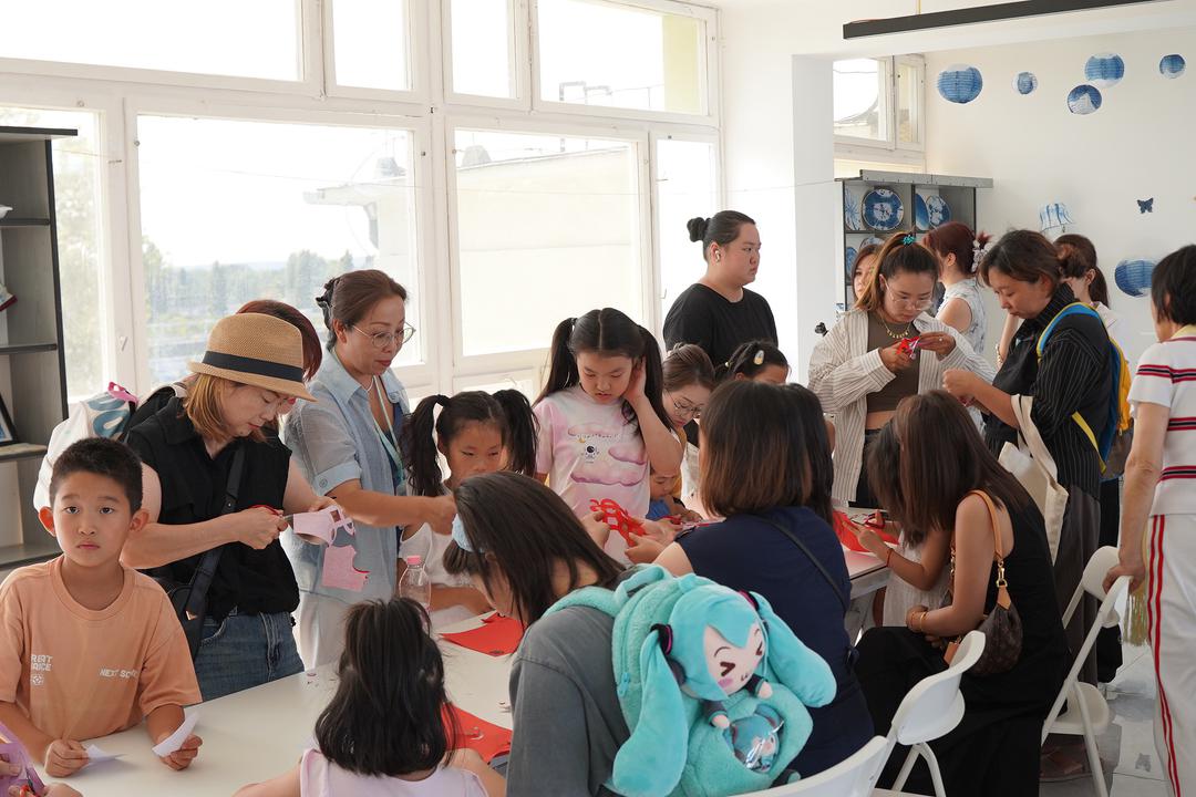 随后的游戏互动环节让孩子们兴奋不已。一间间教室早已布置妥当,或你演我猜,或即兴抱团,或跑跳躲闪……还有那静下心来进行非遗剪纸和脸谱面具制作的……不光孩子们开心,家长们也时不时爆发快乐的笑声。