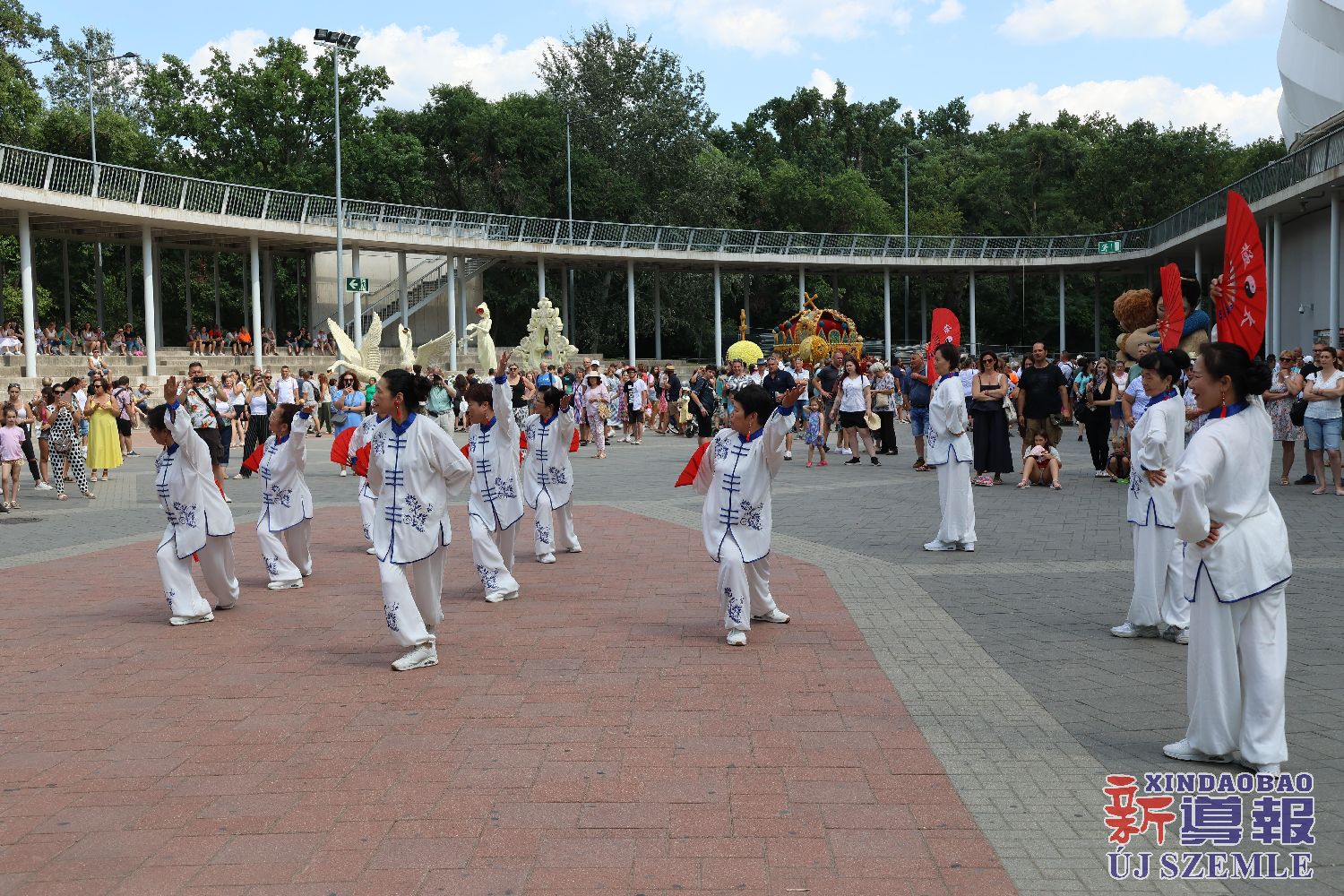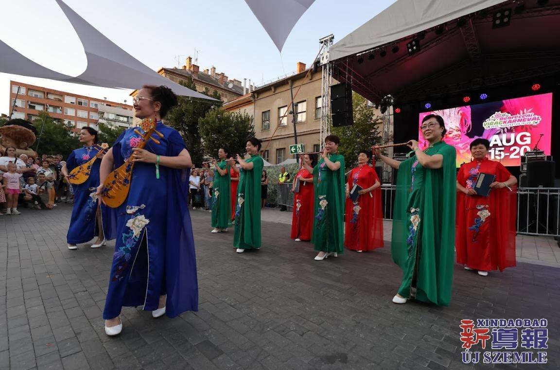 新导报讯:为庆祝2025年匈牙利国庆日,匈第二大城市德布勒森于8月15-20日举行花卉狂欢节。在匈牙利-中国文化交流协会的协调和沟通下,匈牙利中国民族文化艺术学院、匈牙利旗袍总会、Previ Team协会受邀于19日至20赴德布勒森参与演出。匈牙利中国民族文化学院、匈牙利旗袍总会为现场民众带来了旗袍走秀与太极扇表演。
