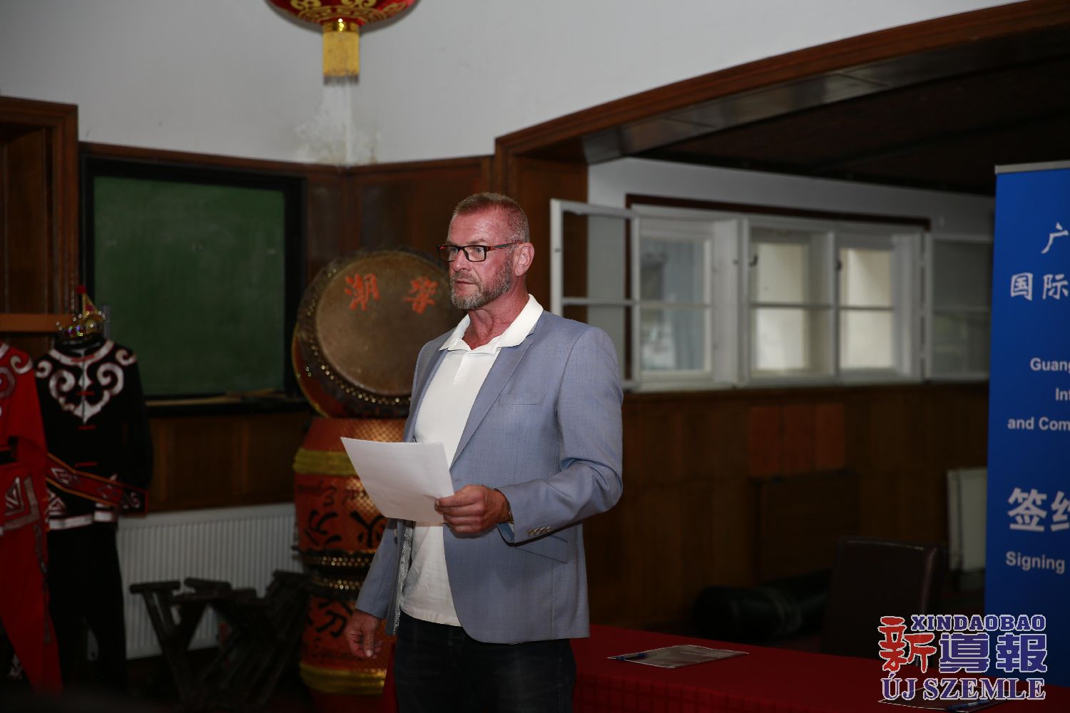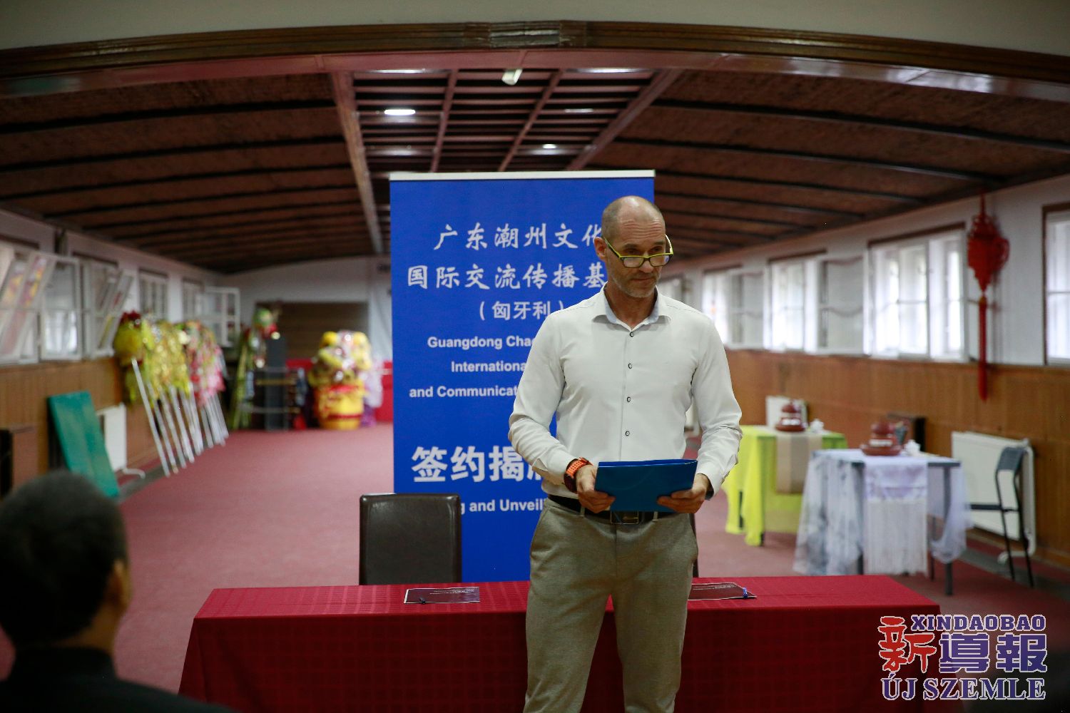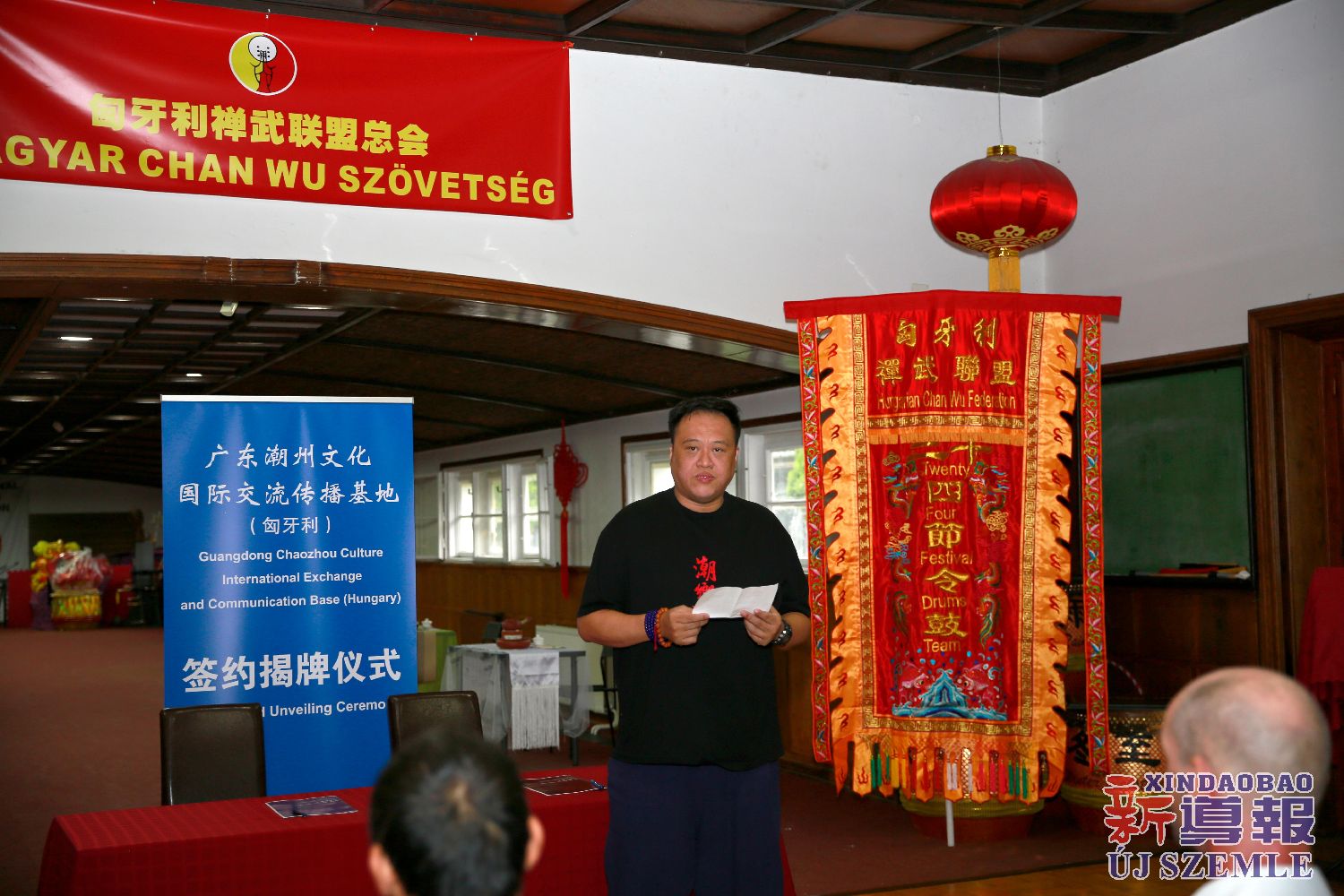 新导报讯:2025年9月14日,位于布达佩斯的匈牙利禅武文化中心内,伴着潮州二十四节令鼓声与潮州英歌舞的飒爽英姿,来自中国潮州的潮響鼓社与匈牙利禅武联盟签署合作备忘录,并举行基地揭牌仪式。