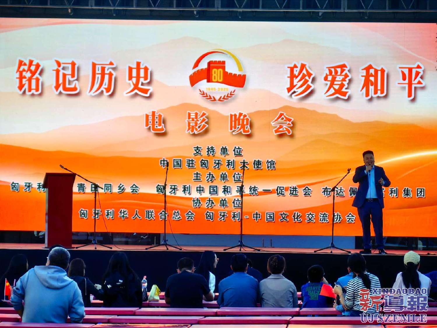 新导报讯:2025年9月19日,位于布达佩斯的富利广场举办了铭记历史珍爱和平电影晚会,活动当日吸引众多旅匈侨胞前来参与。驻匈使馆领事孔铭盛、汪恺妮,匈牙利丽水青田同乡会会长叶小荣、秘书长范巧雄等嘉宾出席本次活动。