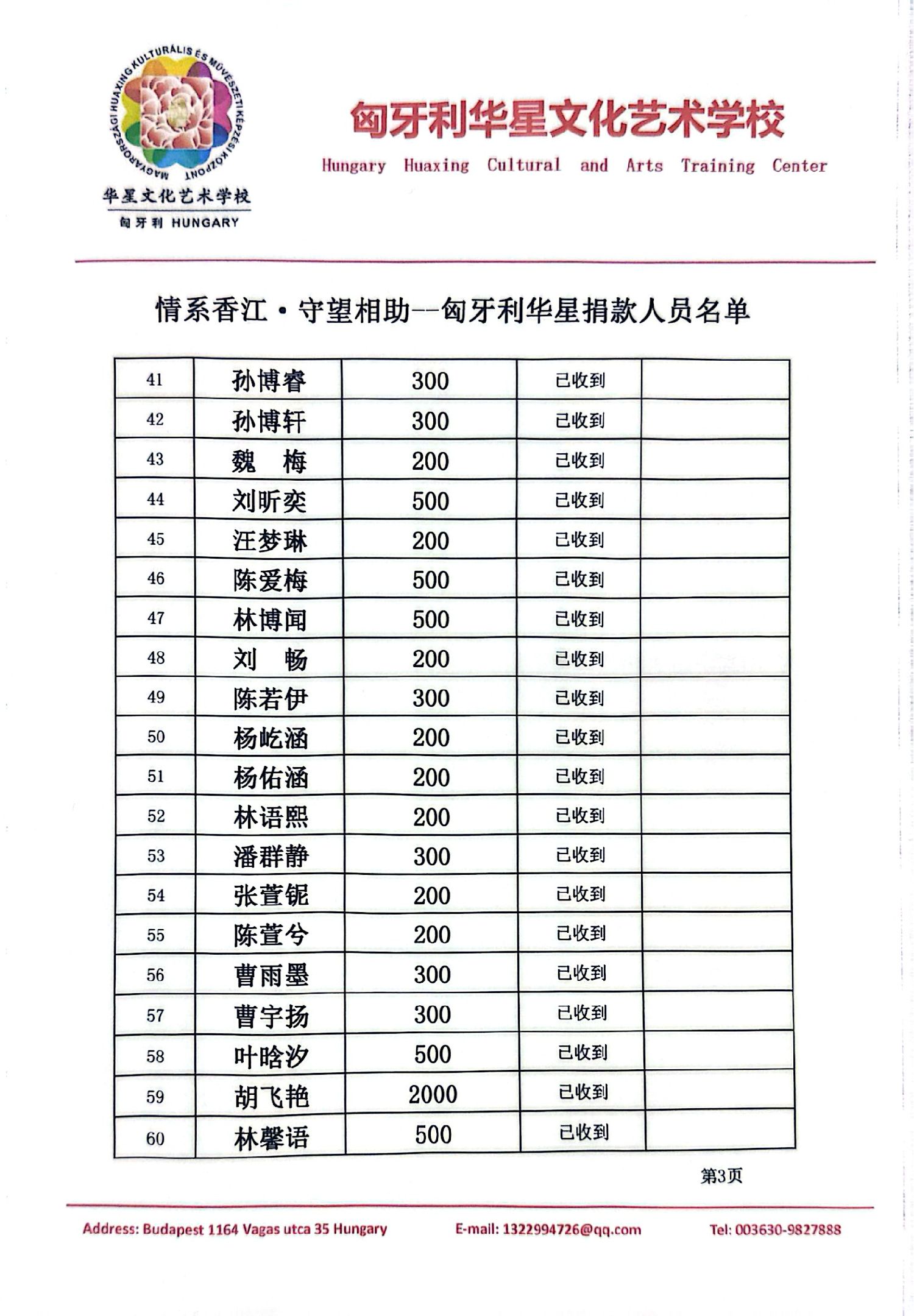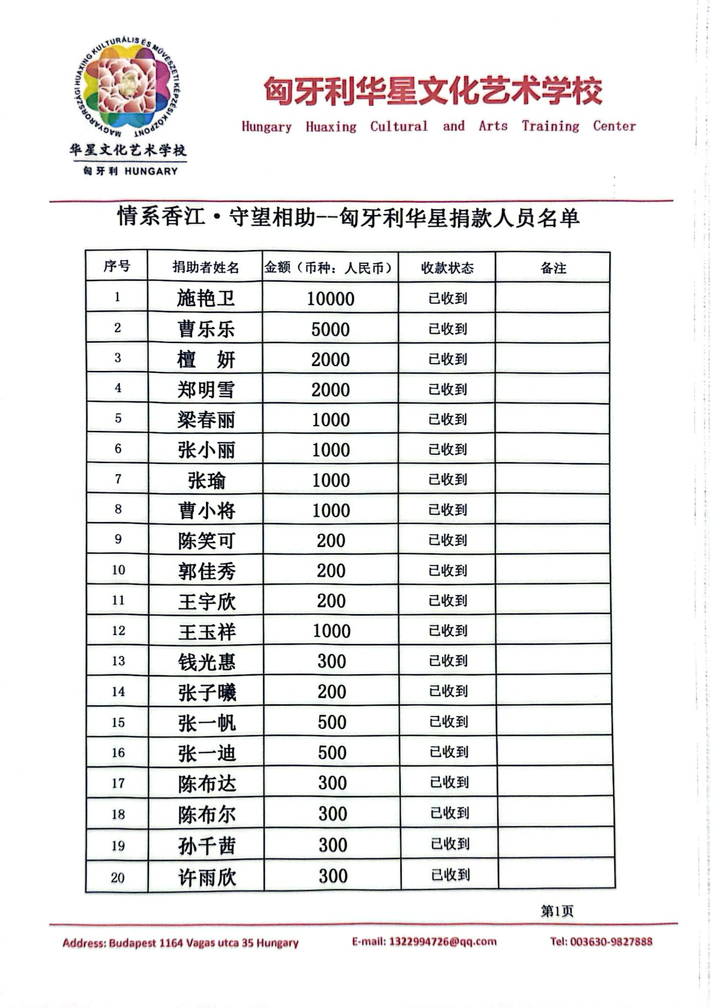 情系香港,大爱同行|匈牙利华星师生为大埔宏福苑火灾灾区踊跃捐款