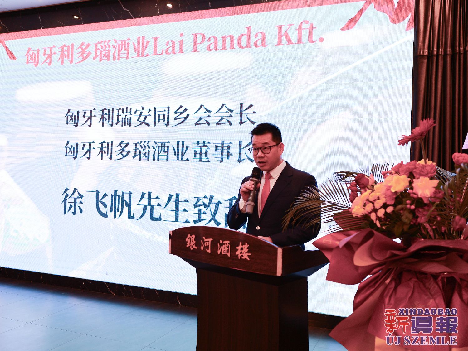 匈牙利多瑙酒业董事长徐飞帆致辞说,这是匈牙利多瑙酒业银河分店开业的重要时刻,要向到场嘉宾表达热烈欢迎与诚挚感谢。