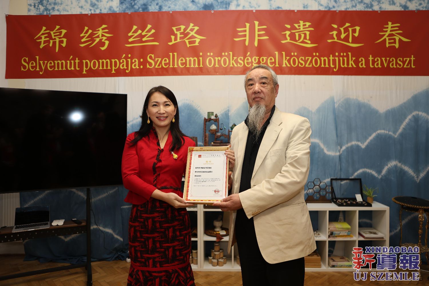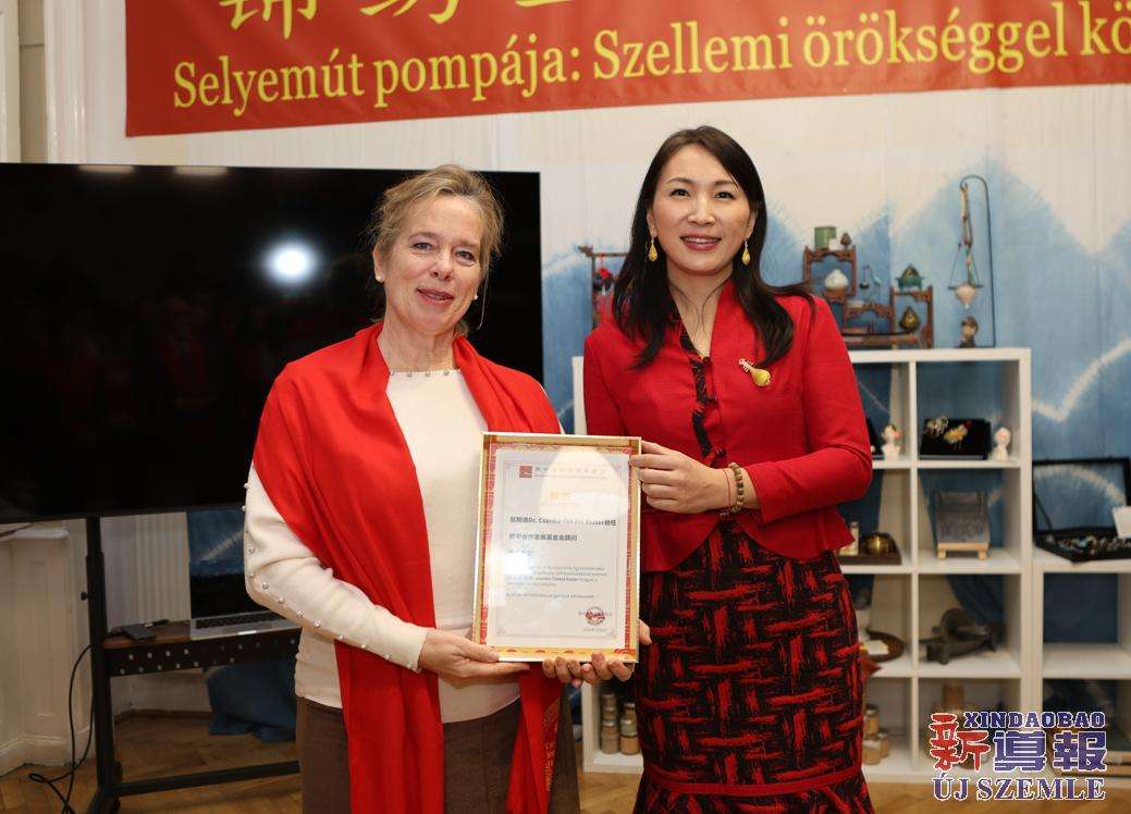 会长苑丹还分别向联合国教科文组织匈牙利全国委员会非物质文化遗产委员会主席埃斯特·克松卡-塔卡奇博士(Dr.Csonka-Takács Eszter),旅匈华人指挥家、匈牙利文化骑士张国治颁发顾问聘书。