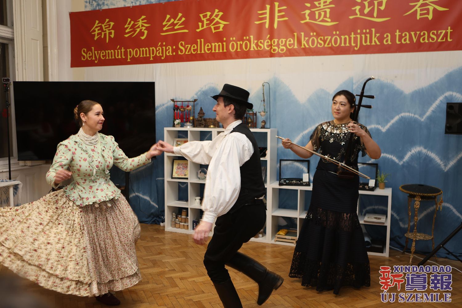 节目演出环节,京剧唱段与川剧变脸纷纷亮相。伴着琵琶的弹拨,李海华副会长进行活字印刷演示,孟雅娟老师进行碑文拓印展示。二胡演绎的《查尔达什》,与匈牙利舞蹈演员的舞步和谐相融。匈牙利歌曲《我面前的三条路》(Háromút előttem)、华服和匈牙利传统服装秀让现场气氛掀起高潮。