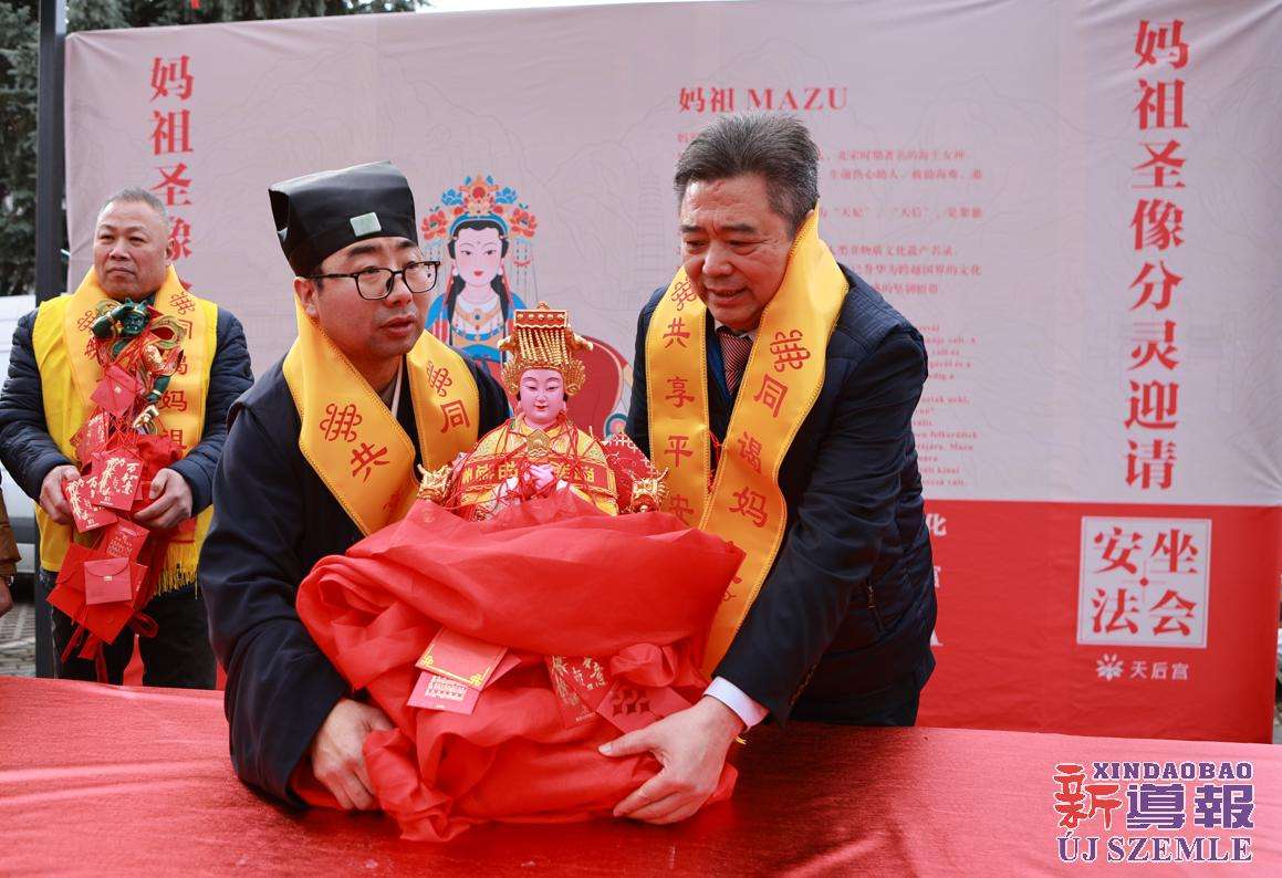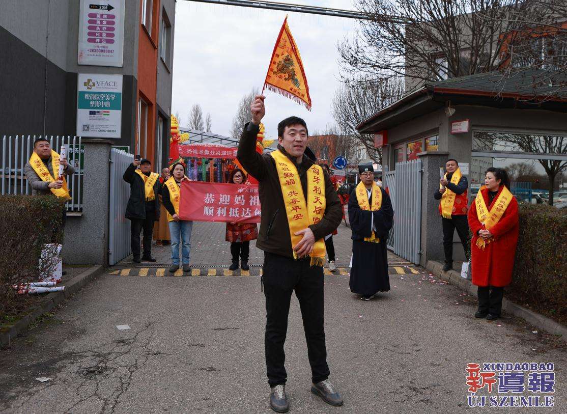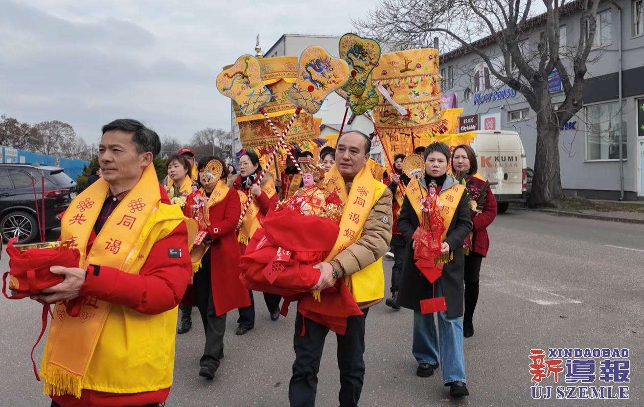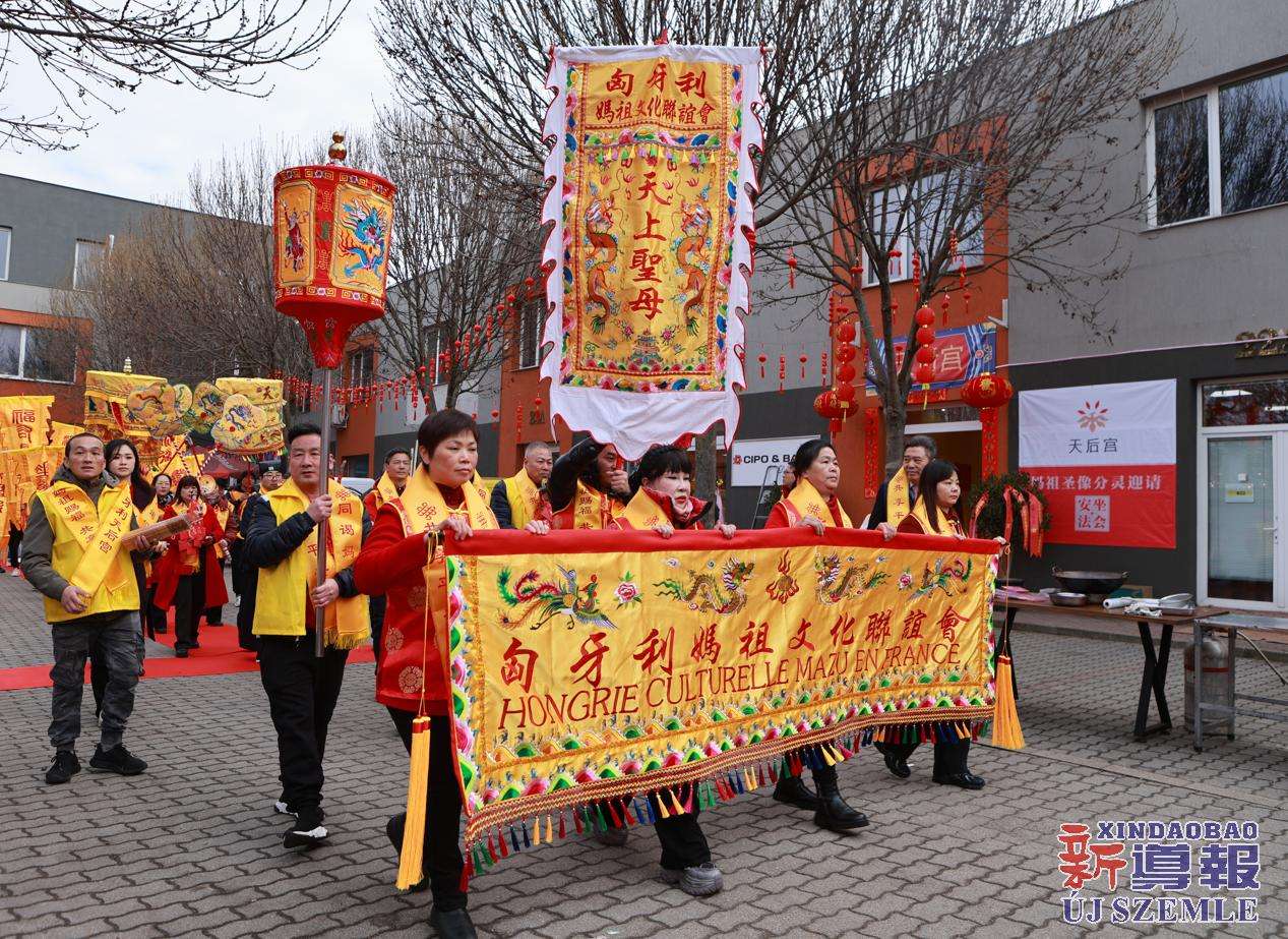 新导报讯:2026年2月9日,由匈牙利中华道教协会、匈牙利天后宫主办,匈牙利妈祖文化联谊会共同协办的妈祖圣像分灵迎请安坐法会在布达佩斯东昇广场盛大举行。旅匈各界侨领、闽籍侨胞及当地信众受邀出席,共同参与此次盛会。