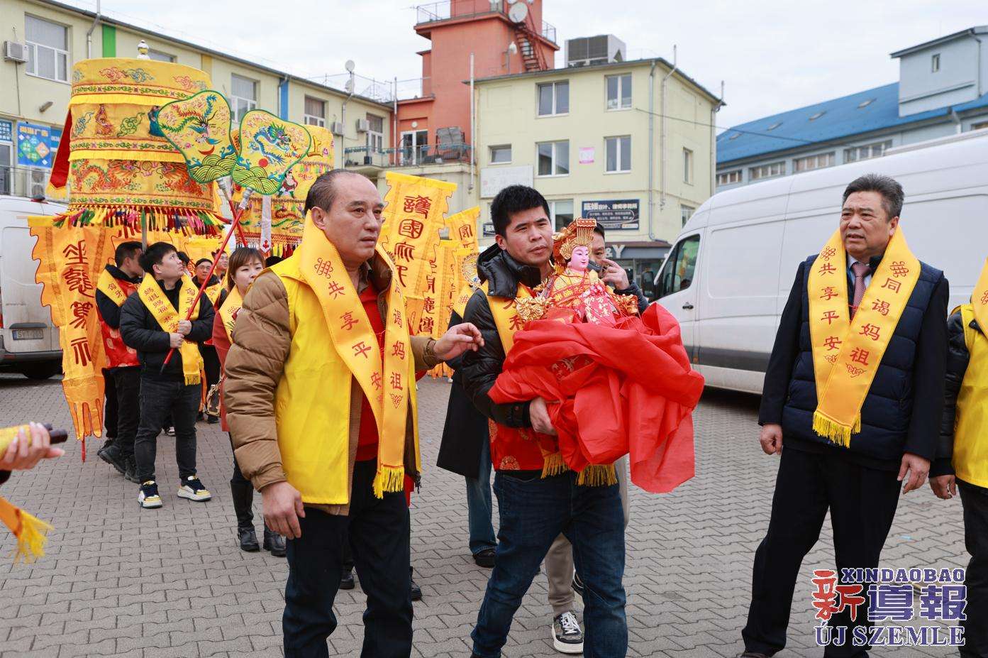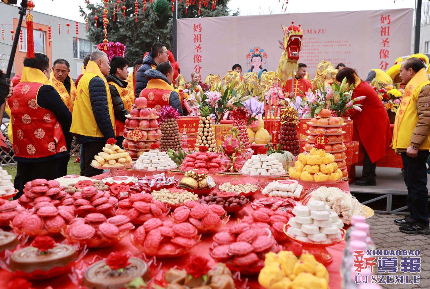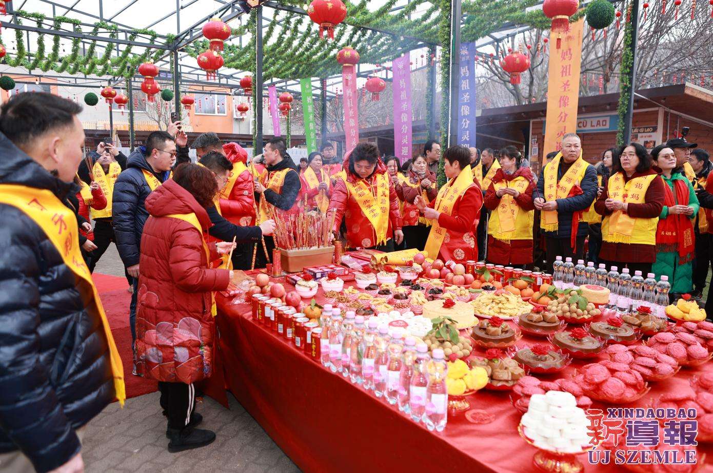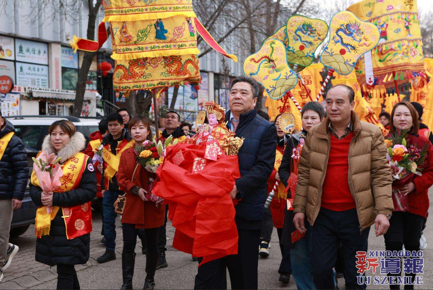 新导报讯:2026年2月9日,由匈牙利中华道教协会、匈牙利天后宫主办,匈牙利妈祖文化联谊会共同协办的妈祖圣像分灵迎请安坐法会在布达佩斯东昇广场盛大举行。旅匈各界侨领、闽籍侨胞及当地信众受邀出席,共同参与此次盛会。