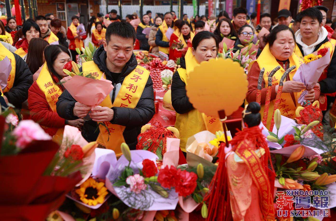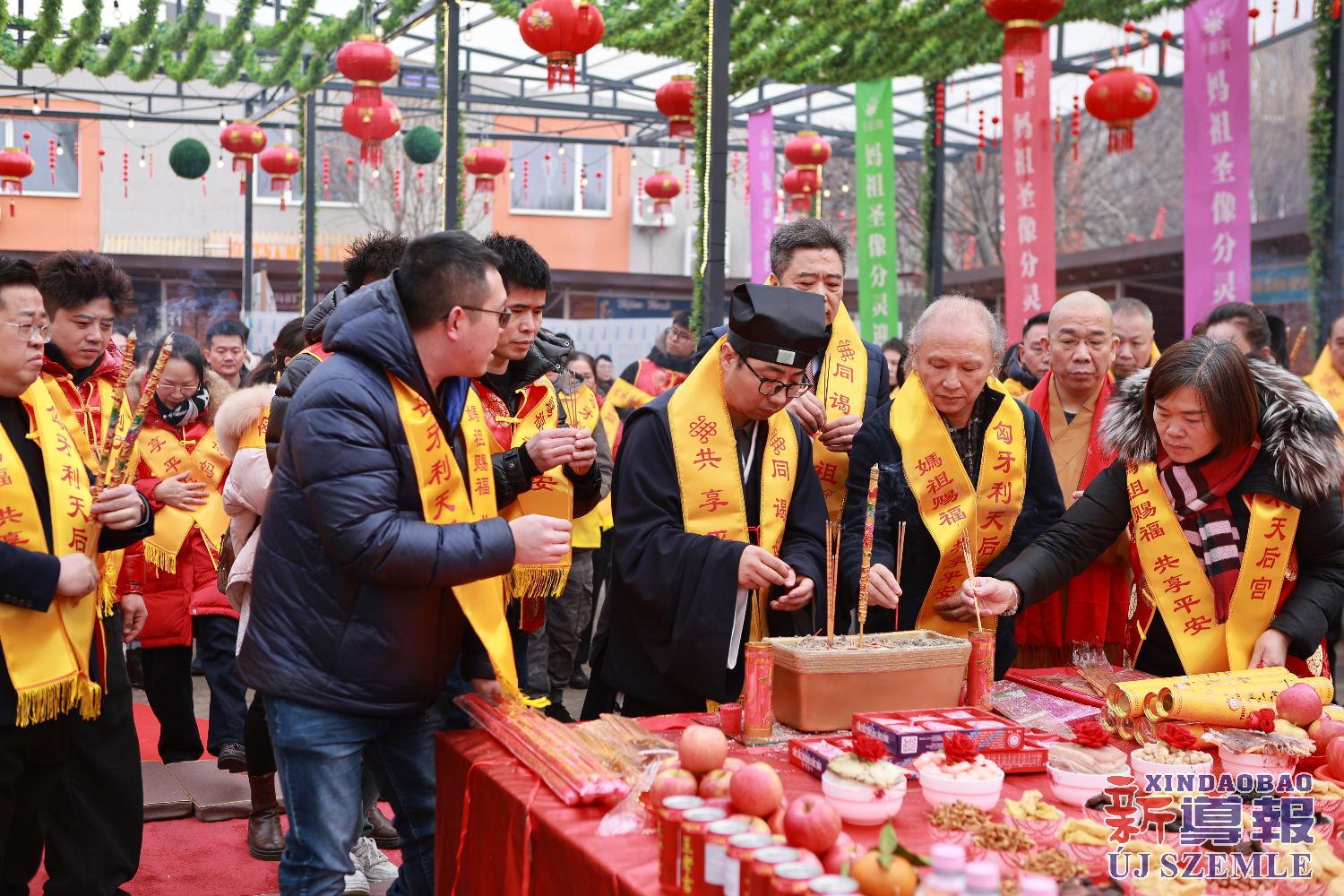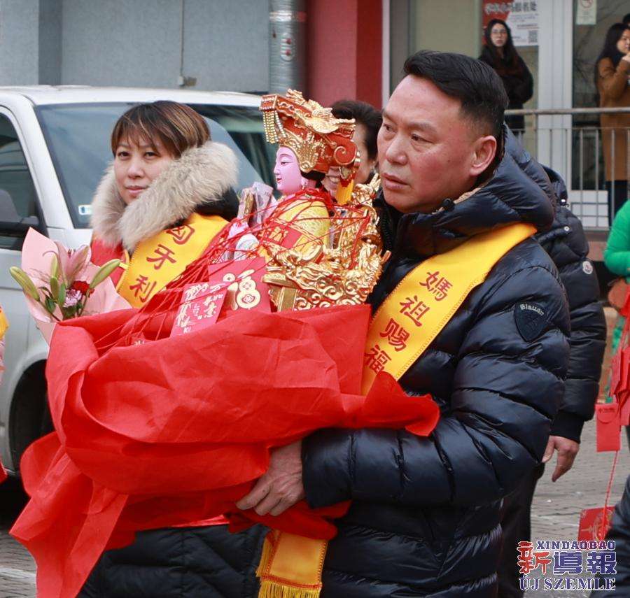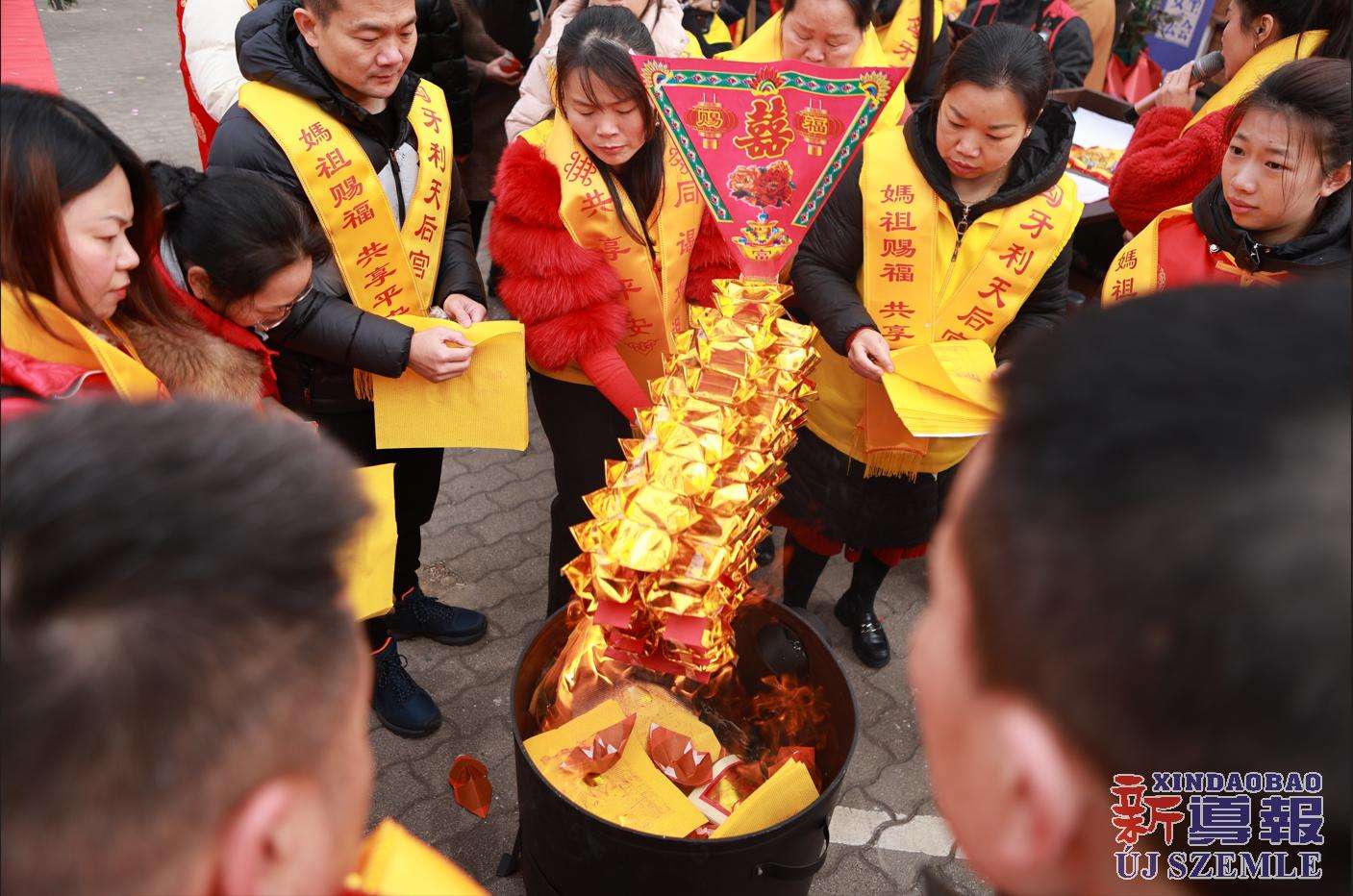 新导报讯:2026年2月9日,由匈牙利中华道教协会、匈牙利天后宫主办,匈牙利妈祖文化联谊会共同协办的妈祖圣像分灵迎请安坐法会在布达佩斯东昇广场盛大举行。旅匈各界侨领、闽籍侨胞及当地信众受邀出席,共同参与此次盛会。