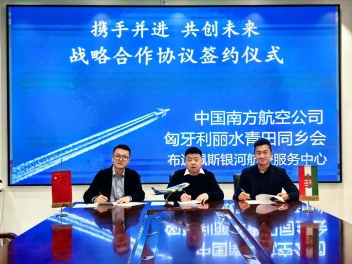 2025年1月10日下午在布达佩斯富利集团办公室,匈牙利丽水青田同乡会与中国南方航空公司签订战略合作协议。根据协议,从2月1日起,只要是丽水青田同乡会的会友,在布达佩斯银河旅行社购买南航指定舱位机票,本人和亲属都可以享受购票优惠及更优惠的退改签政策。