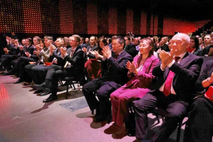 2025年1月24日,驻匈牙利使馆举行新春招待会暨“欢乐春节”中国旋律专场音乐会,龚韬大使和匈文化与创新部长汉科出席并致辞。匈国会副主席汉戴、外交与对外经济部副国务秘书兰捷尔、内务部副国务秘书海吉奥尔尧伊、投资促进局局长尤欧等匈国会、政府、政党高层及匈各界友好人士,驻匈使节及在匈中资机构、华侨华人和留学生代表逾600人出席。