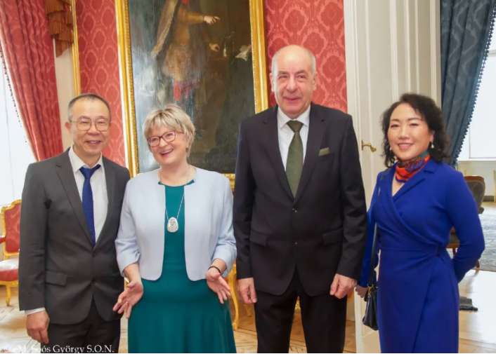 2月24日,匈牙利总统舒尤克·道马什先生携夫人纳吉·苏珊娜女士一起,亲自出席在山多尔宫总统府举办的匈牙利特奥代表队宣誓仪式,为将于3月参加世界冬季特殊奥林匹克运动会的选手们送行,同时热情接见了魏翔、黄晨凤夫妇,感谢他们三十年来对匈牙利特奥运动的支持和付出。