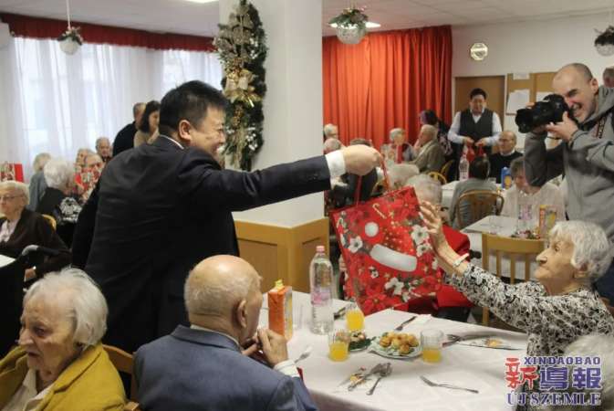 12月17日,匈牙利知名华商叶小荣率团赴布达佩斯十区彩虹养老院(Szivárvány Idősek Otthona)开展公益行动。布达佩斯十区区长D.Kovács Róbert Antal、彩虹养老院院长Lajtai分别表示,当地华人对于各机构的慈善事业一直抱以积极的态度与大力的支持,此次匈牙利丽水青田同乡会和富利集团联手在彩虹养老院开展公益行动便是最好的证明。