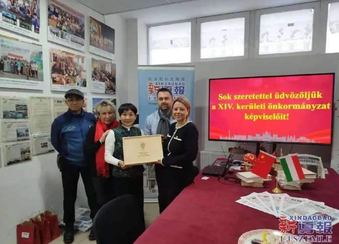 12月19日,布达佩斯第十四区副区长基尼什·安德丽娅(Kinisch Andrea)女士和区政府代表托特·阿提拉(Tóth Attila)到访匈牙利-中国文化交流协会和新导报社。副区长安德丽娅女士特别感谢在匈牙利-中国文化交流协会的协调下,慈济壹佰基金会于12月10日为布达佩斯第14区盲人特殊教育机构捐助100万福林,并请匈牙利-中国文化交流协会代为转交区政府为慈济壹佰基金会准备的礼物。