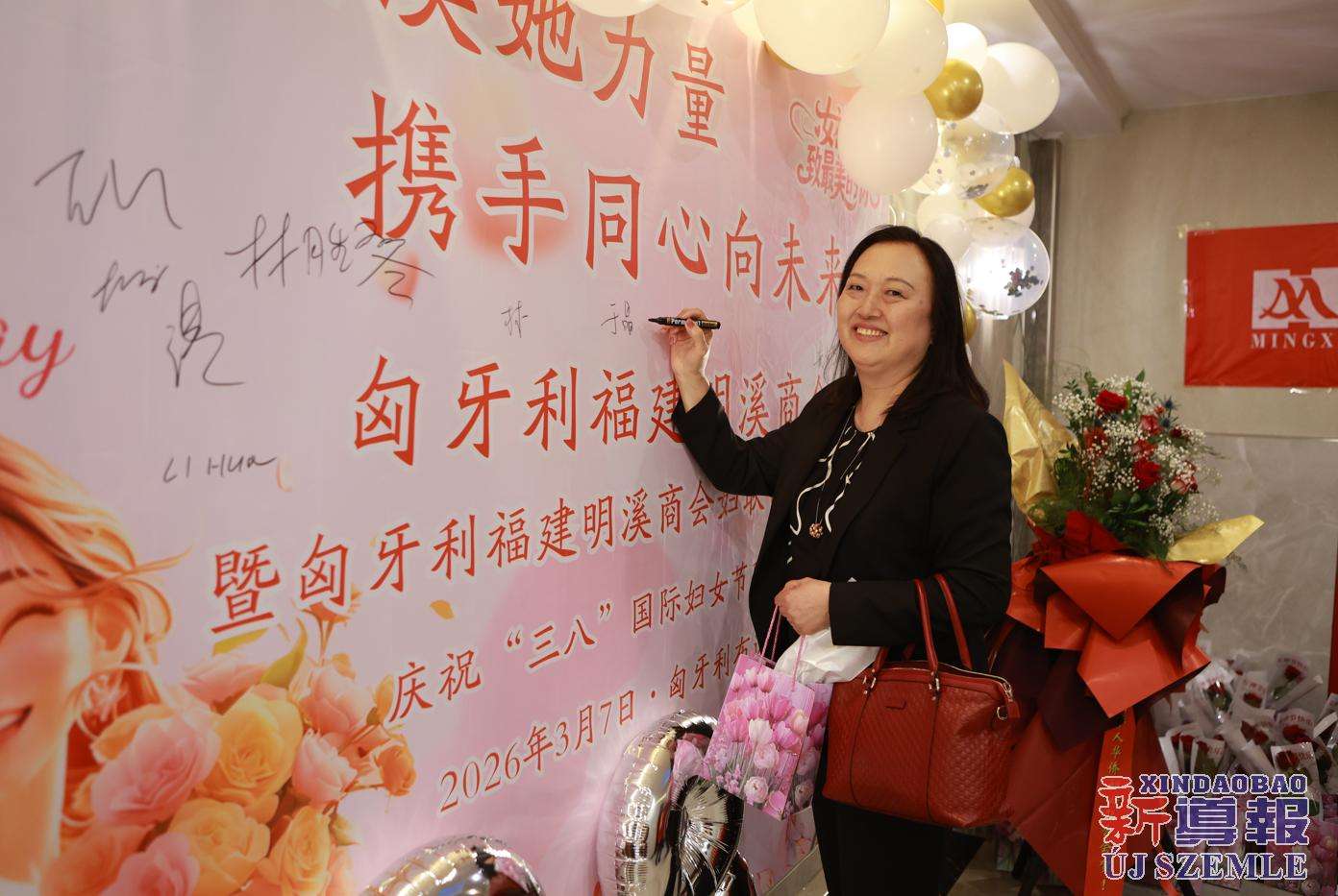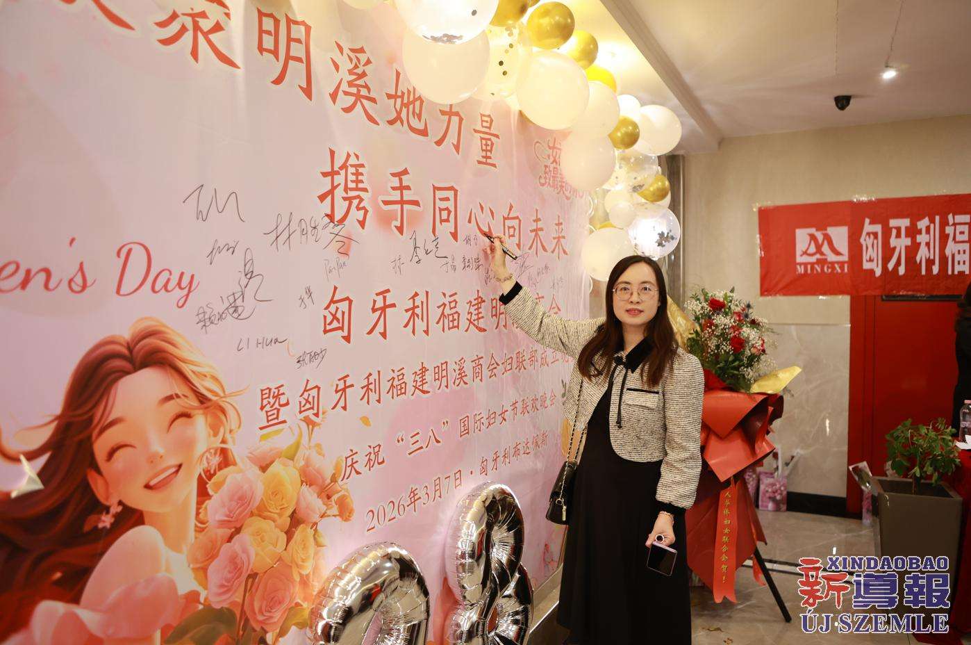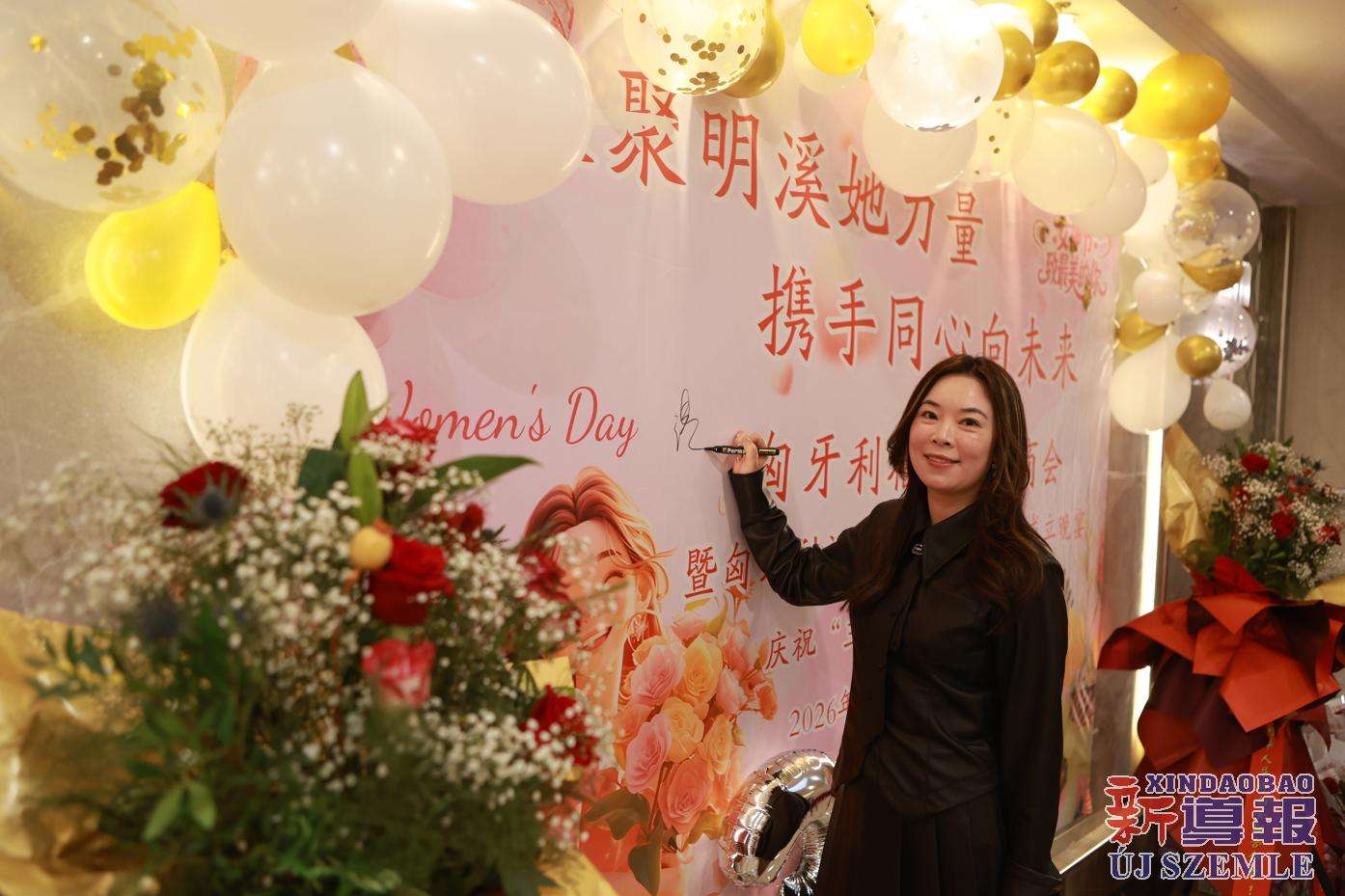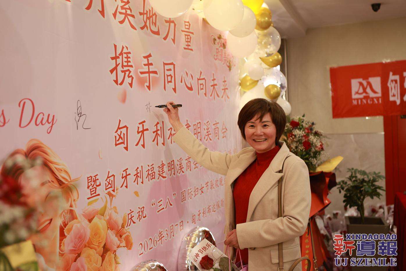 新导报讯:2026年3月7日,匈牙利福建明溪商会举办商会妇联部成立暨庆祝“三八”国际妇女节联欢晚会。中国驻匈牙利使馆领侨处主任胡巧、领事罗茹姗,匈牙利丽水青田同乡会妇女儿童权益部部长季红莲、常务理事章利珠、张丽少,匈牙利华侨华人妇女联合总会会长林胜琴,副会长于华、潘秀明,匈牙利华人华侨妇女联合会会长于晶、执行会长张丽梅、秘书长黄少芳,匈中文创会会长沈则君及旅匈各界侨胞出席本次活动。