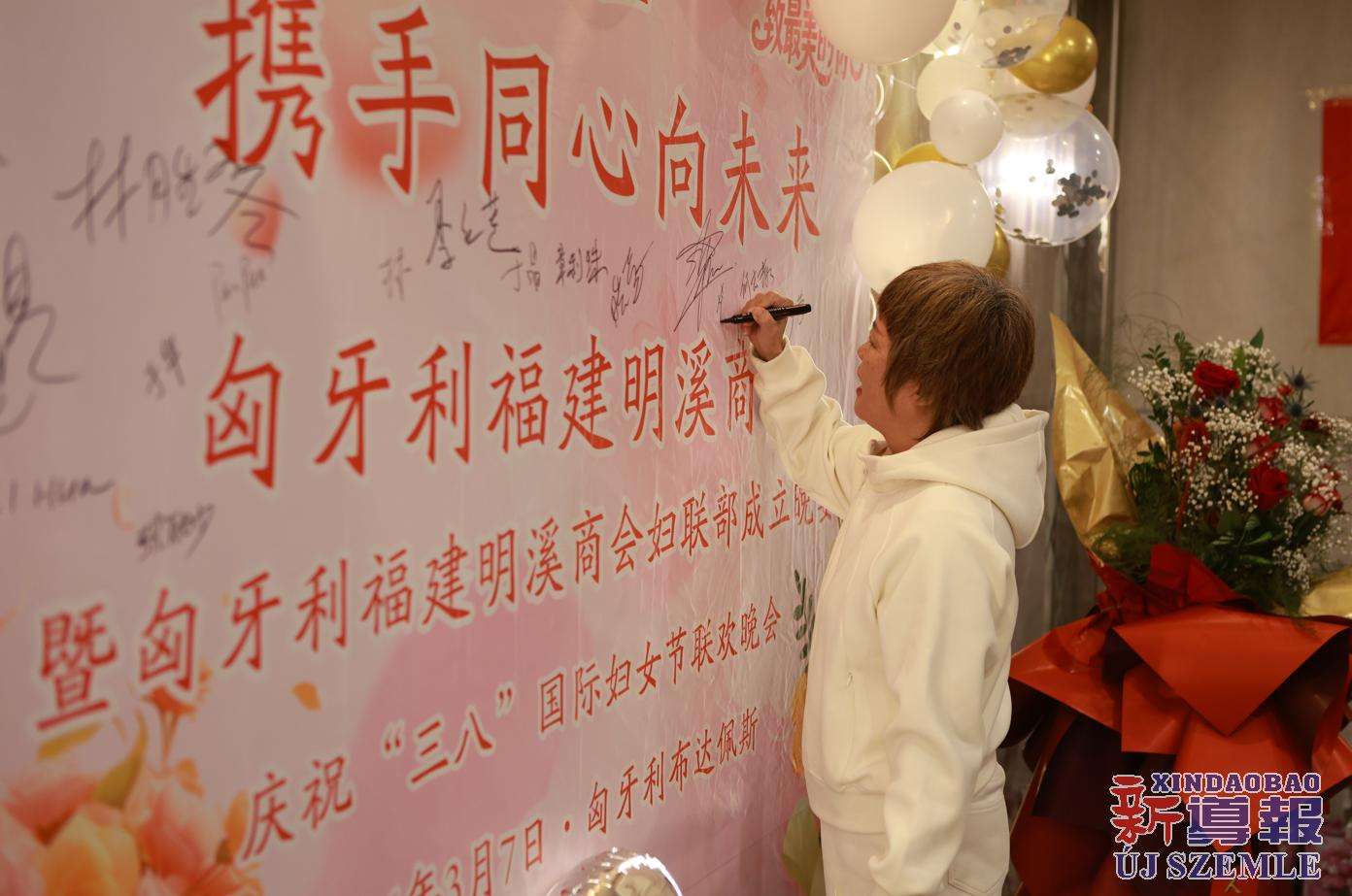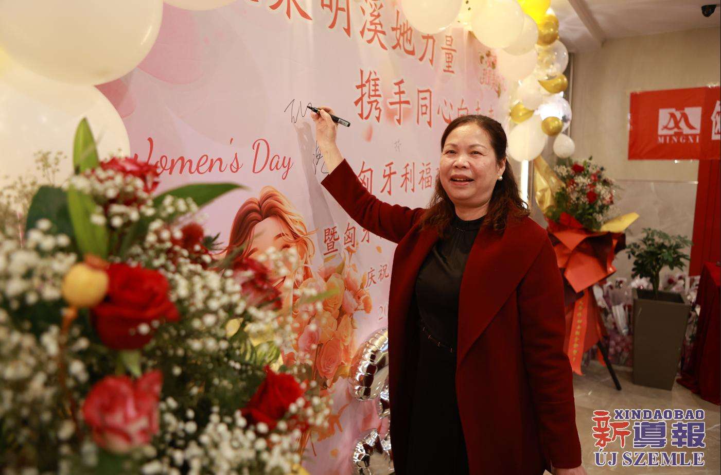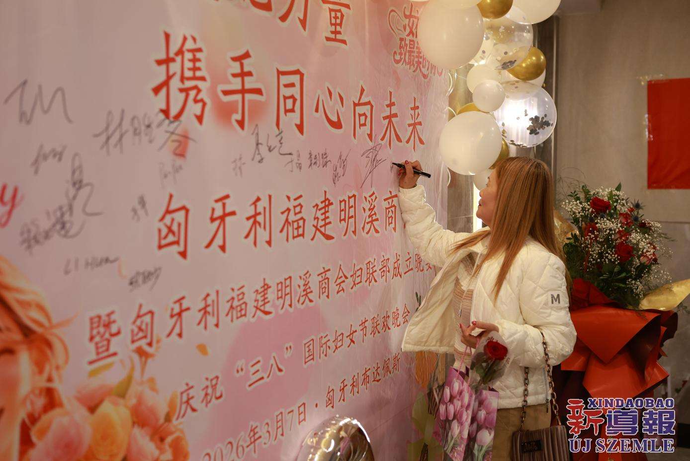 新导报讯:2026年3月7日,匈牙利福建明溪商会举办商会妇联部成立暨庆祝“三八”国际妇女节联欢晚会。中国驻匈牙利使馆领侨处主任胡巧、领事罗茹姗,匈牙利丽水青田同乡会妇女儿童权益部部长季红莲、常务理事章利珠、张丽少,匈牙利华侨华人妇女联合总会会长林胜琴,副会长于华、潘秀明,匈牙利华人华侨妇女联合会会长于晶、执行会长张丽梅、秘书长黄少芳,匈中文创会会长沈则君及旅匈各界侨胞出席本次活动。