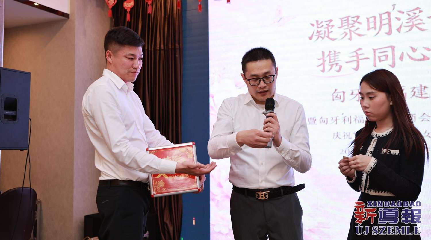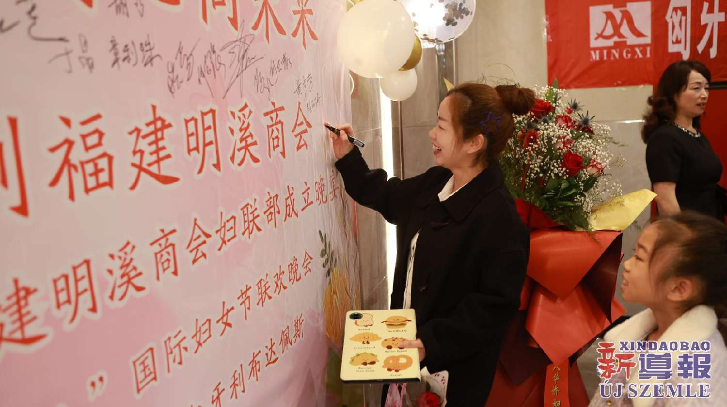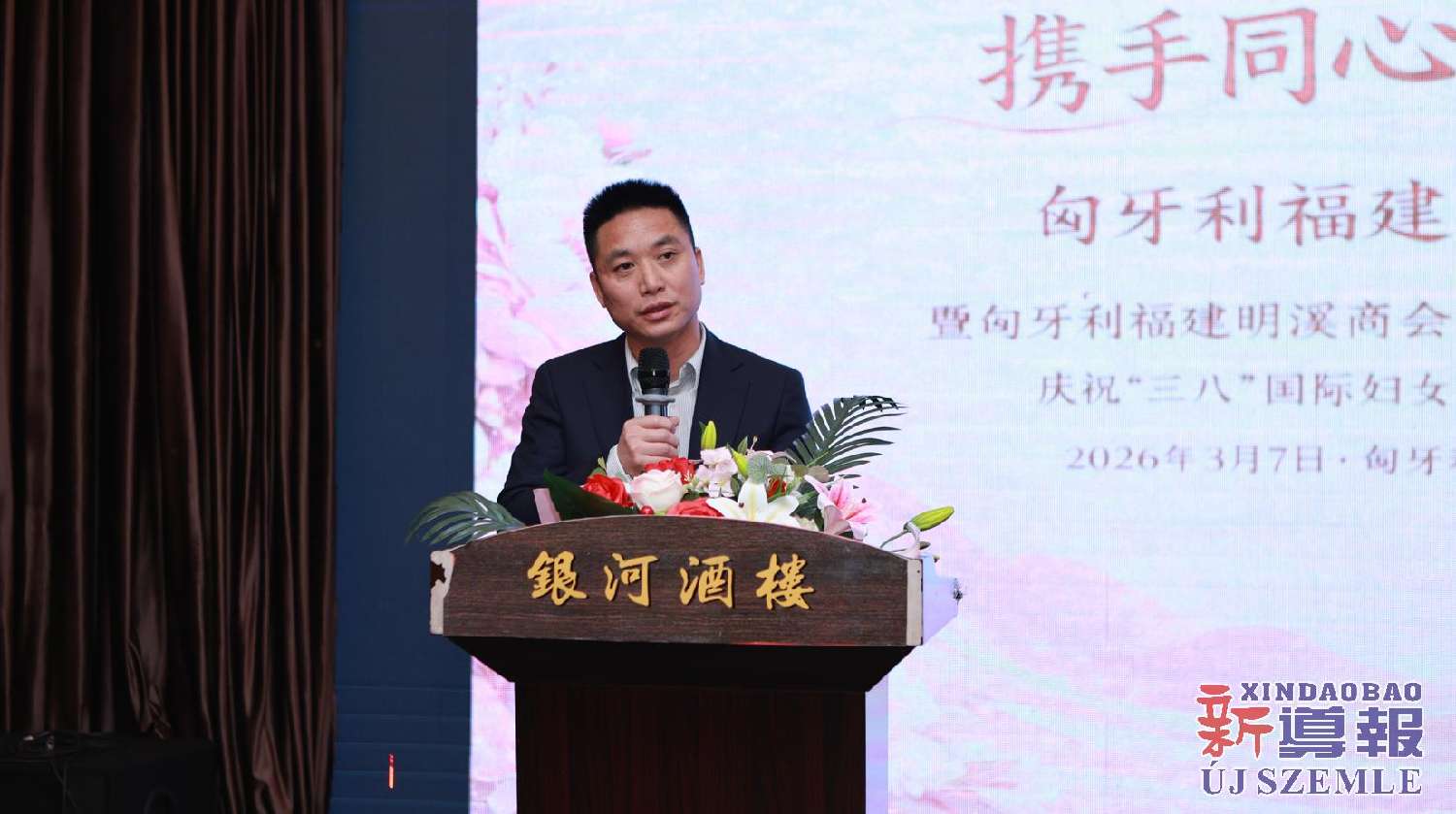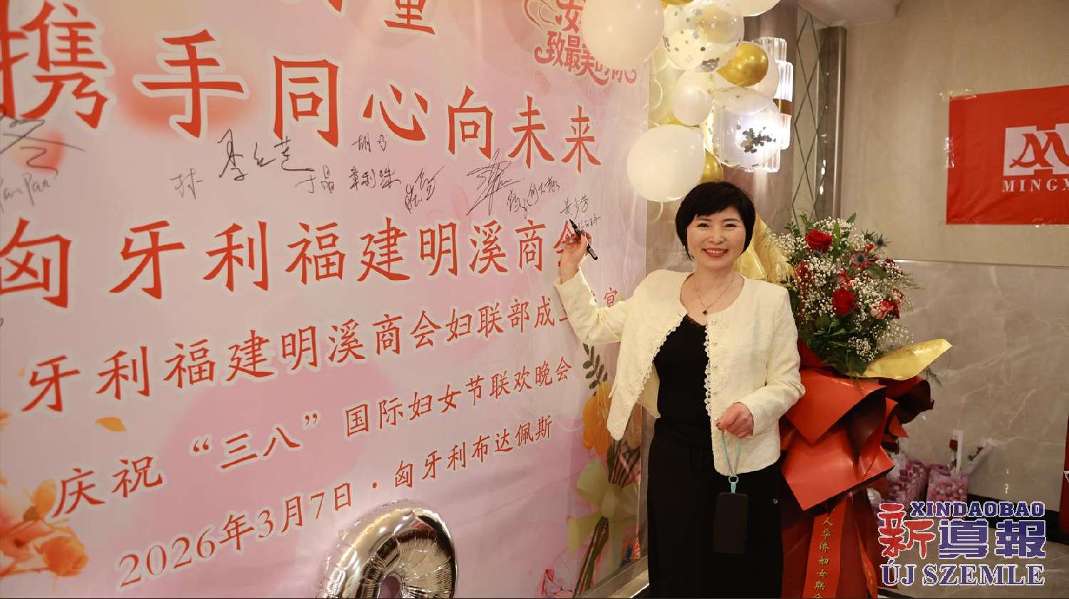 新导报讯:2026年3月7日,匈牙利福建明溪商会举办商会妇联部成立暨庆祝“三八”国际妇女节联欢晚会。中国驻匈牙利使馆领侨处主任胡巧、领事罗茹姗,匈牙利丽水青田同乡会妇女儿童权益部部长季红莲、常务理事章利珠、张丽少,匈牙利华侨华人妇女联合总会会长林胜琴,副会长于华、潘秀明,匈牙利华人华侨妇女联合会会长于晶、执行会长张丽梅、秘书长黄少芳,匈中文创会会长沈则君及旅匈各界侨胞出席本次活动。