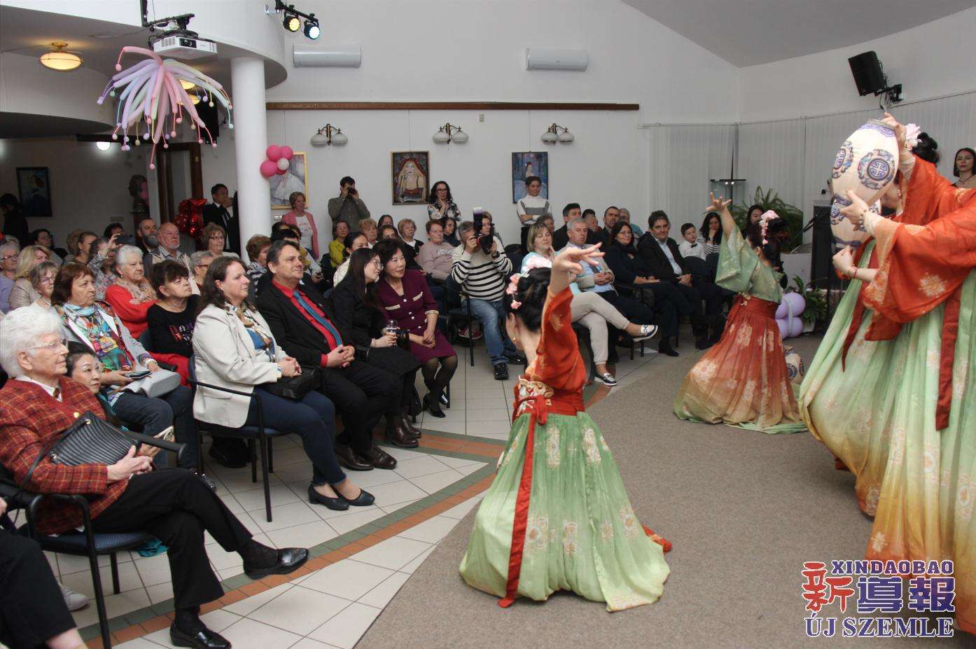随后,现场观众欣赏了由匈牙利华侨华人妇女联合总会、旅匈古筝青年演奏家张晔、杰奈什迪亚什民族舞蹈团等带来的精彩演出,大家被中匈文化交融之美深深吸引。演出中场,嘉宾代表向到场的中匈女士献上鲜花,现场洋溢着温馨动人的气氛。