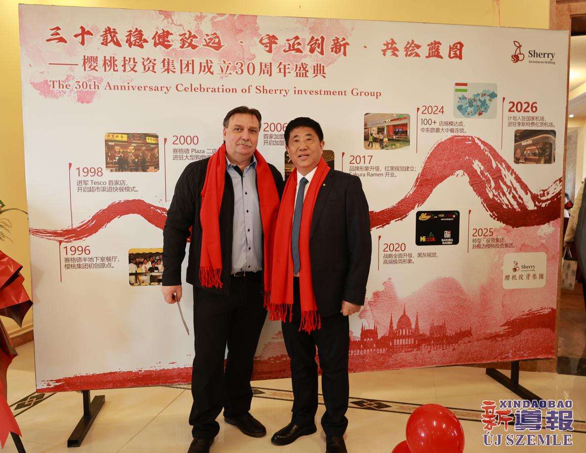新导报讯:2026年3月15日,匈牙利樱桃投资集团在布达佩斯的欧侨科技产业园区举办了主题为三十载稳健致远·守正创新·共绘蓝图的三十周年庆典暨年度盛典。集团合作伙伴、旗下员工及中匈各界嘉宾出席本次活动。