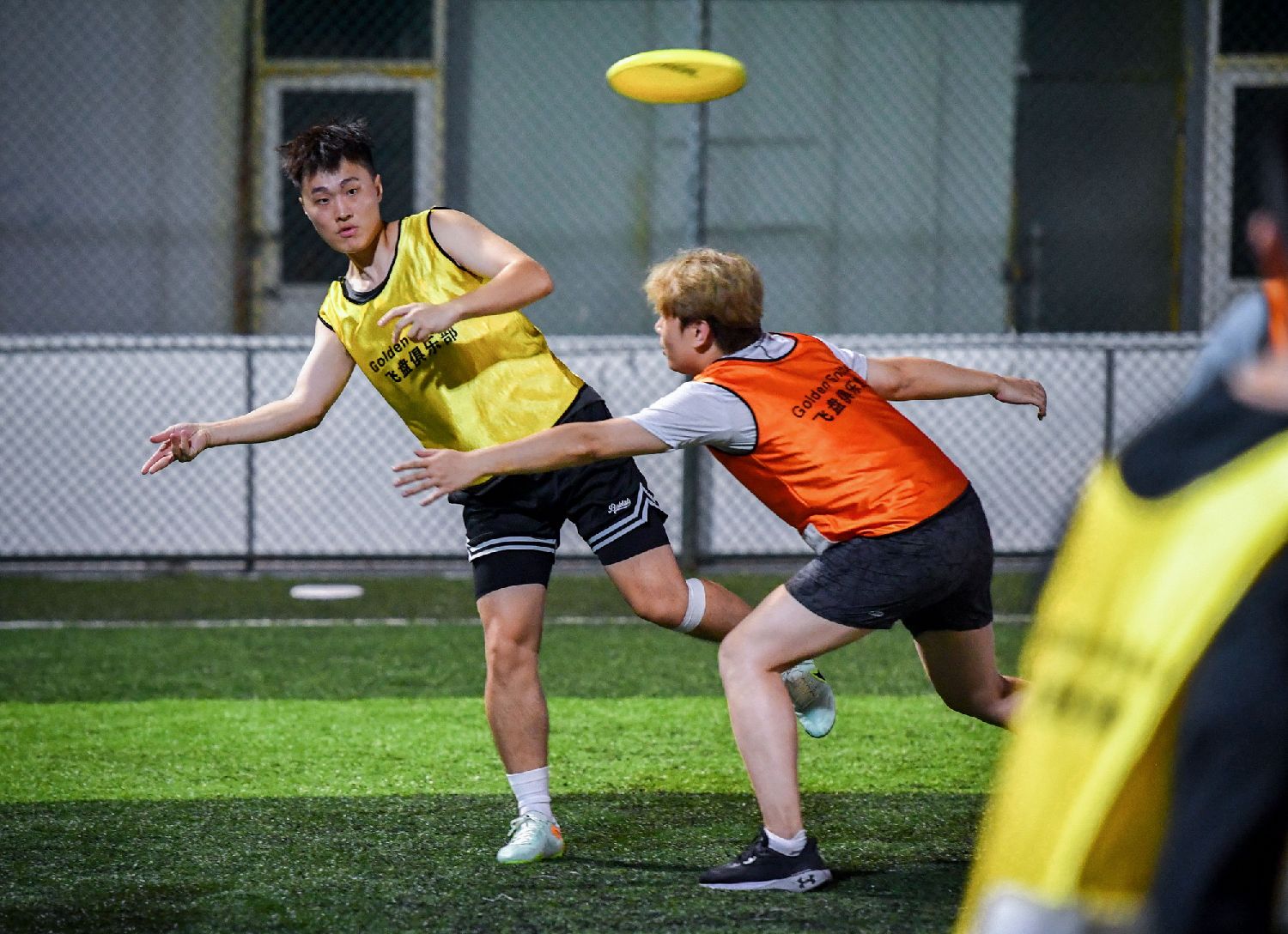 飞盘运动吸引了众多年轻人参与。赵健鹏 摄