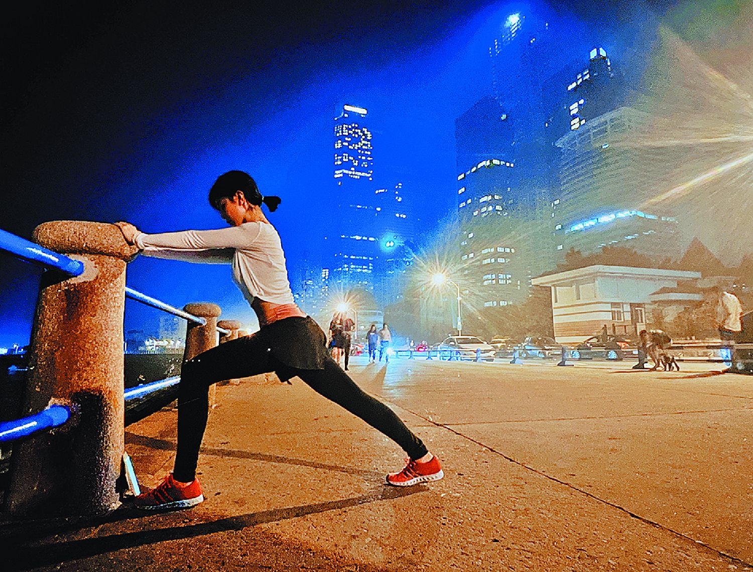 晚上9点,牟超和姜娜带着4岁的女儿来到音乐广场与“夜跑团”会合,边跑步,边享受惬意的亲子时光。在青岛奥林匹克帆船中心,有15年跑龄的张鑫则选择享受独处时光。