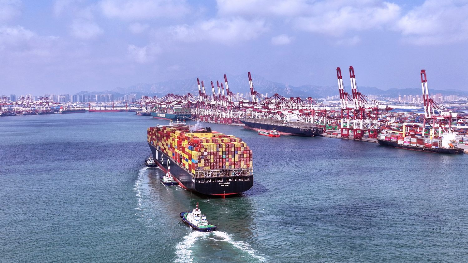 大船频频靠泊青岛港。
