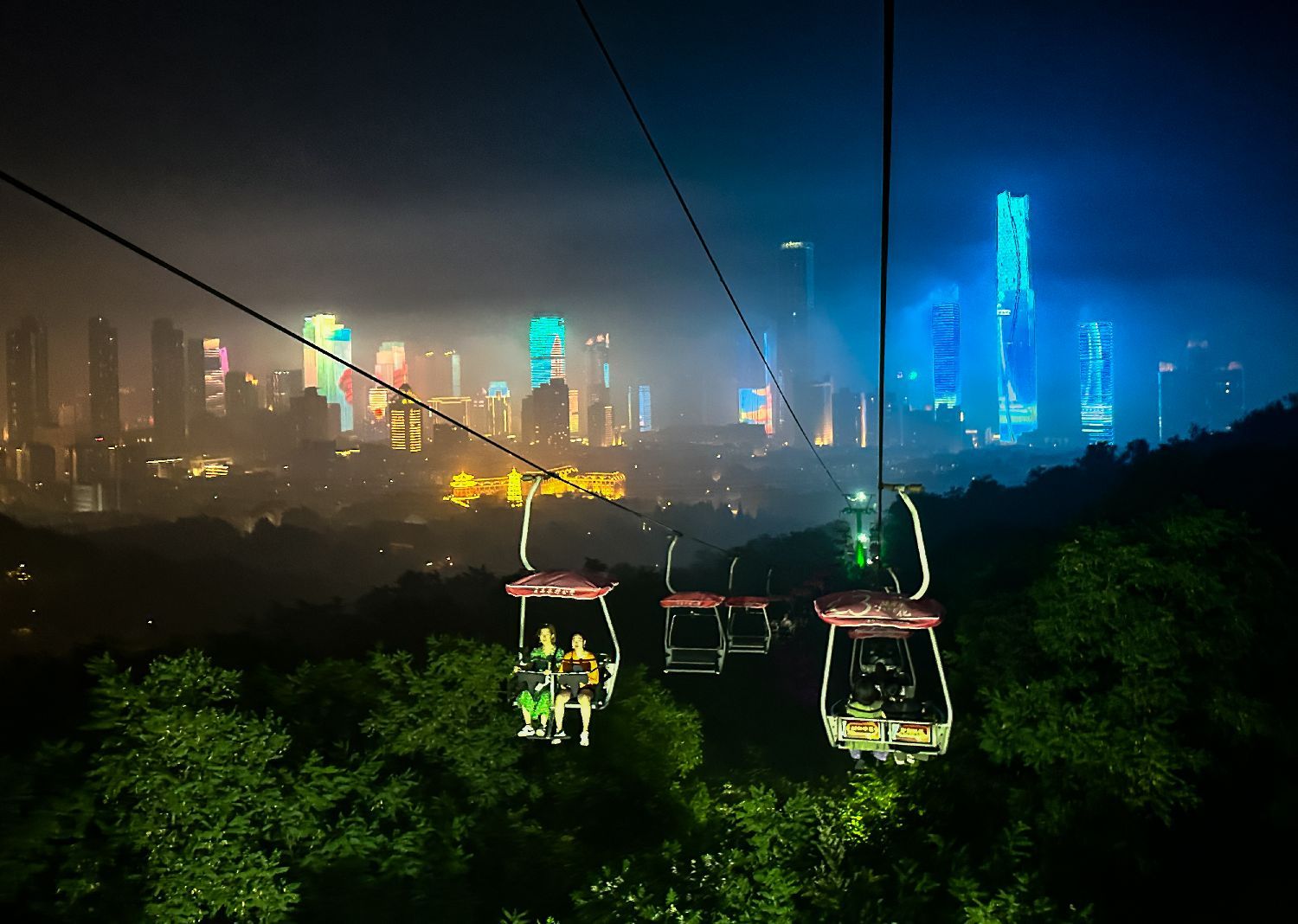 在太平山中央公园,华灯初上的太平山在夜色中徐徐“展开”一幅绚丽画卷,蜿蜒而行的彩虹桥向山林深处延展,在灯光映衬下,72种颜色交互渐变,犹如一条在山间舞动的彩带。人们或漫步休憩“画中游”,或乘坐太平山索道“漫步”空中,一览青岛瑰丽夜色。(刘栋)