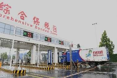 日日顺货物经过海关监管通道驶入青岛空港综合保税区。