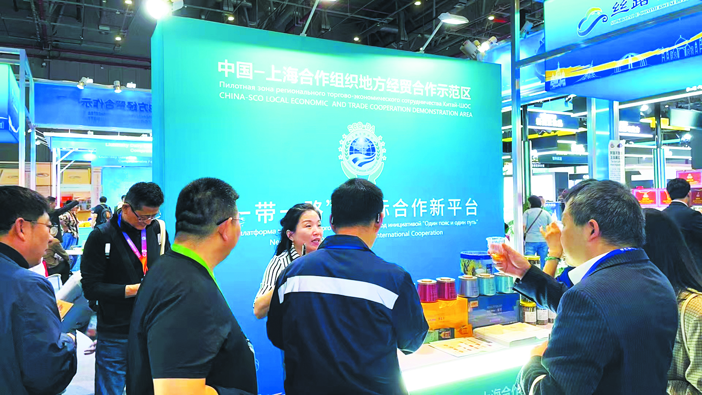 【国家会展中心(上海)里的上合示范区展台。王成浩摄】