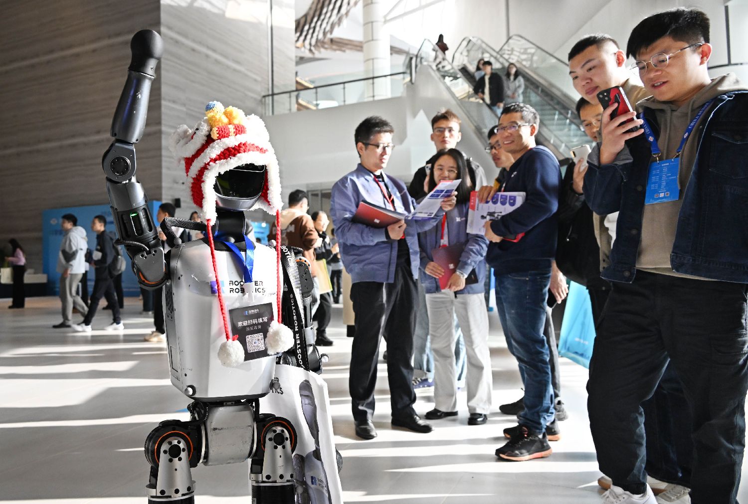 【与会者在2024中国自动化大会展览区与智能机器人互动。李紫恒摄】
