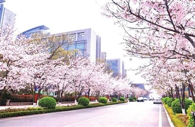 新会路上的樱花灿若云霞。市南区文旅局供图