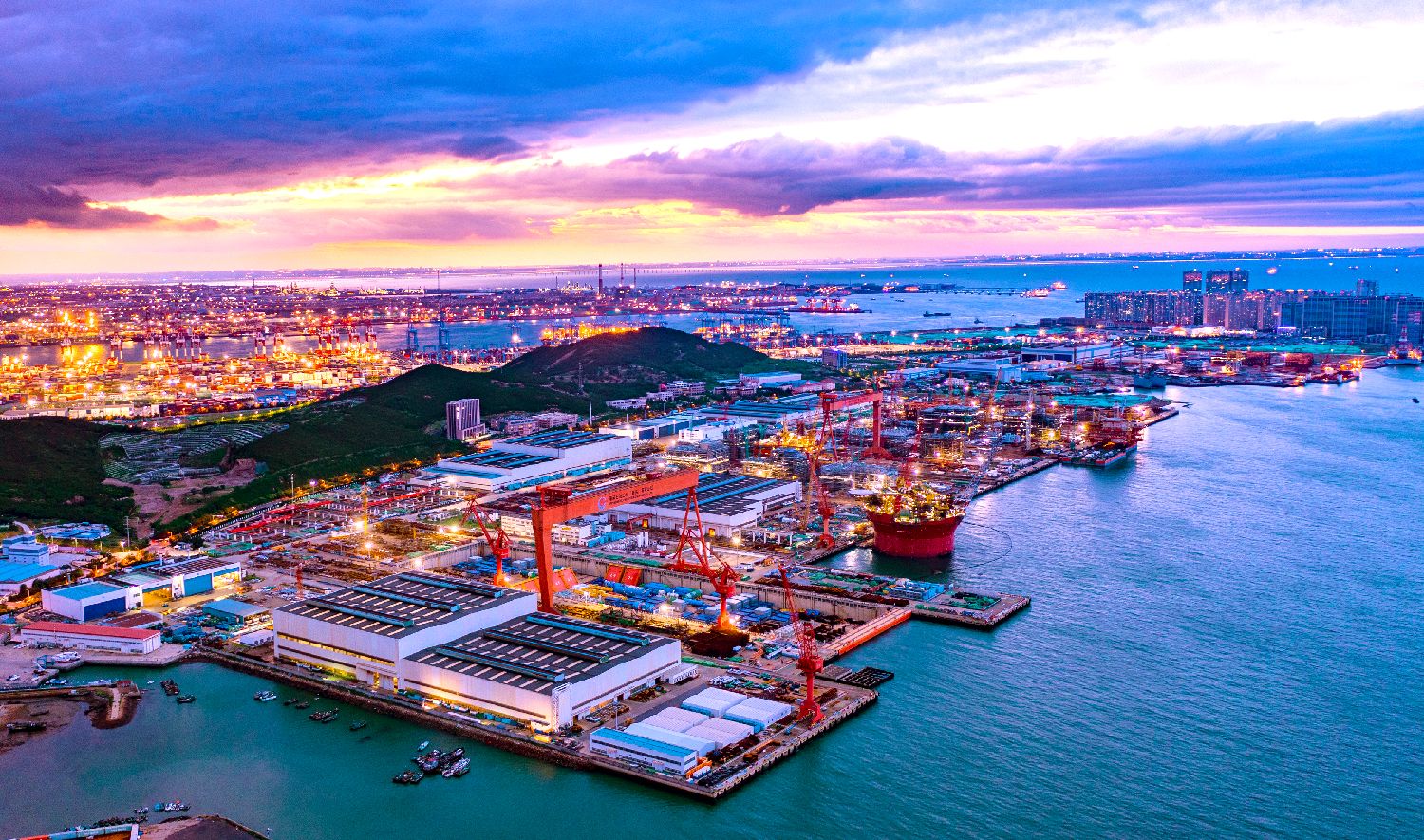 【位于青岛西海岸新区的海西湾船舶海工产业基地。】