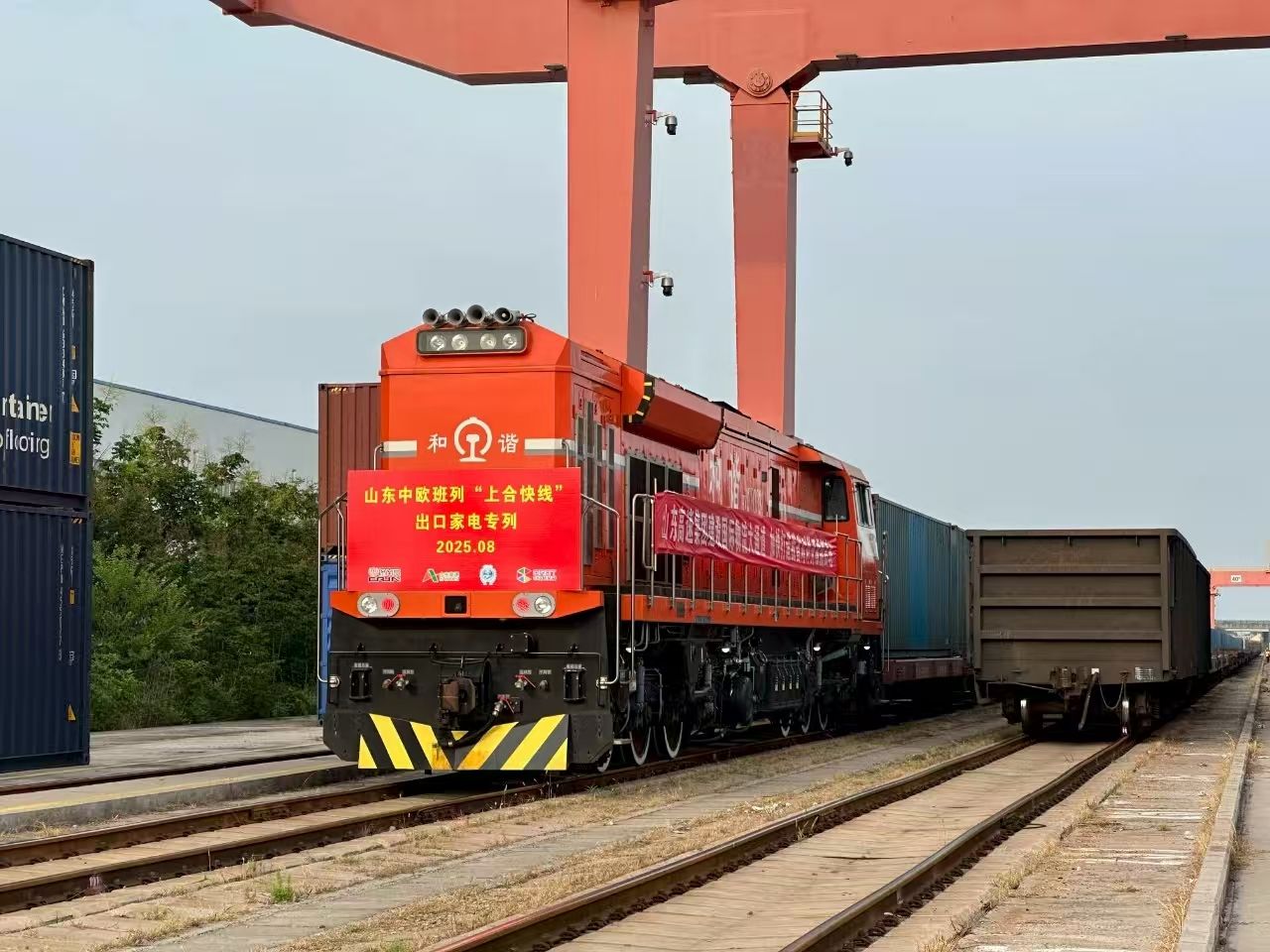 【中欧班列“上合快线”出口家电专列从青岛出发。】