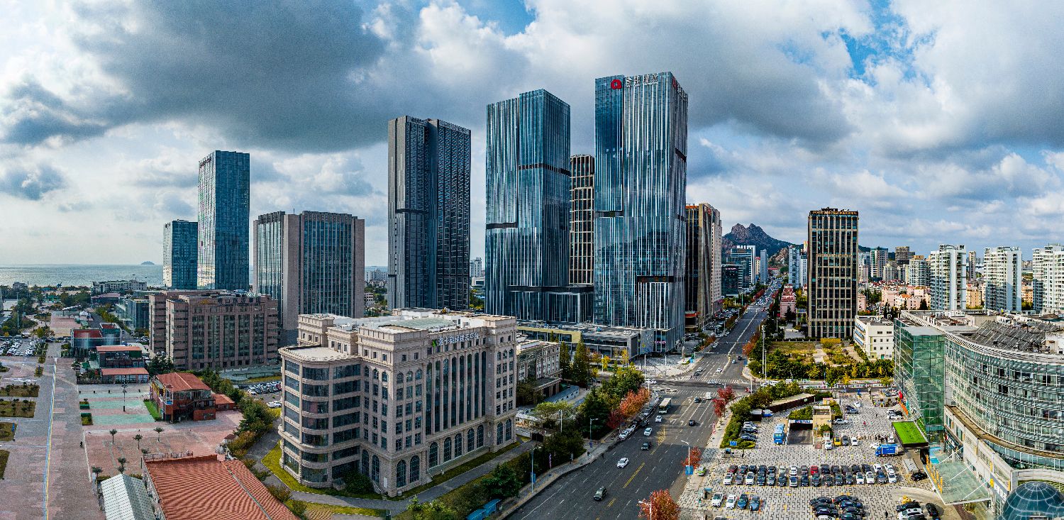 【青岛金家岭金融集聚区吸引众多国际金融机构入驻。】