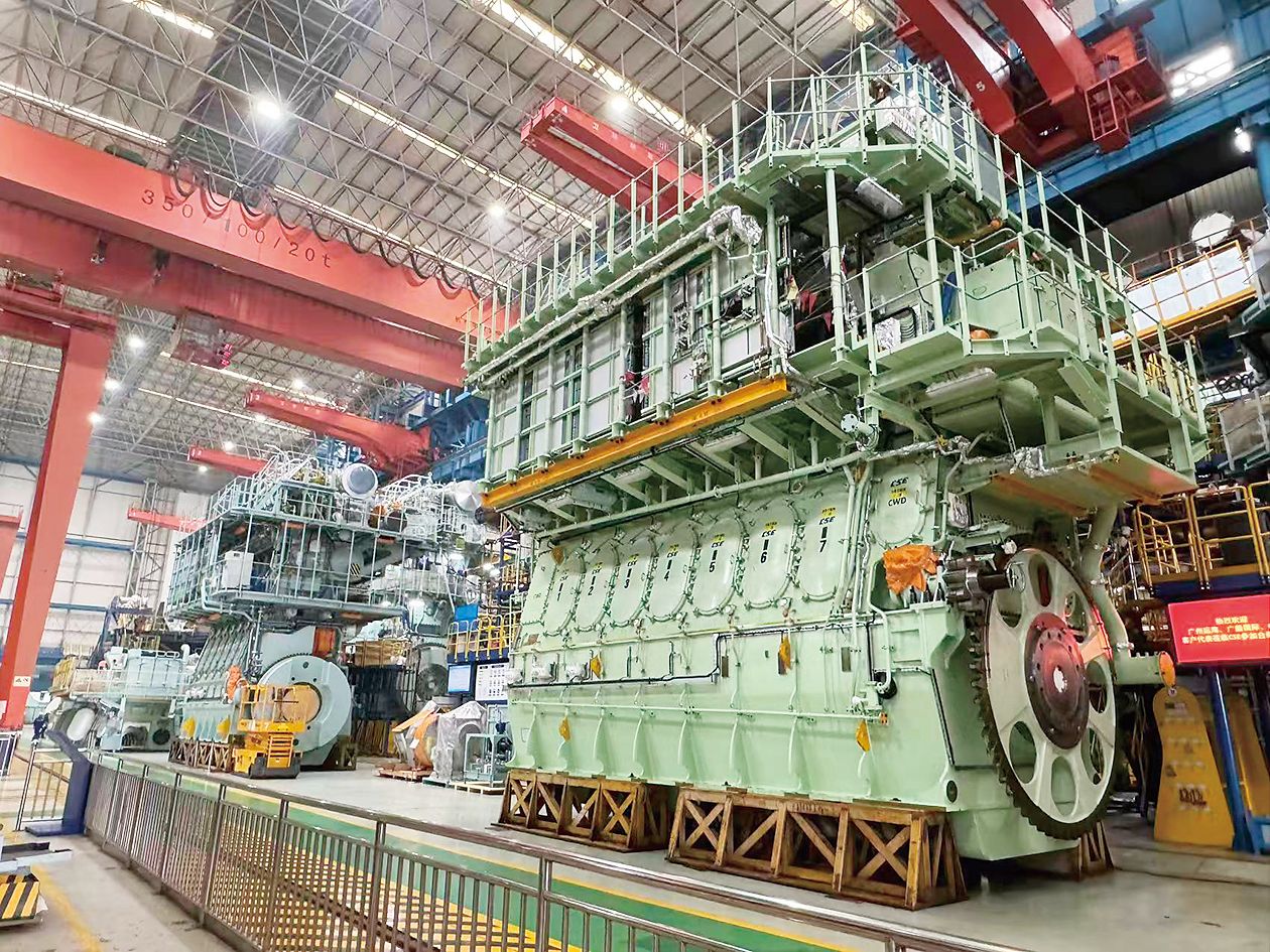 中船发动机生产的船用低速机。