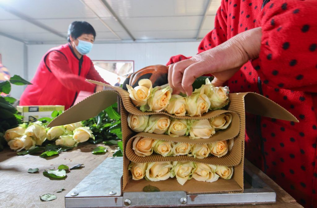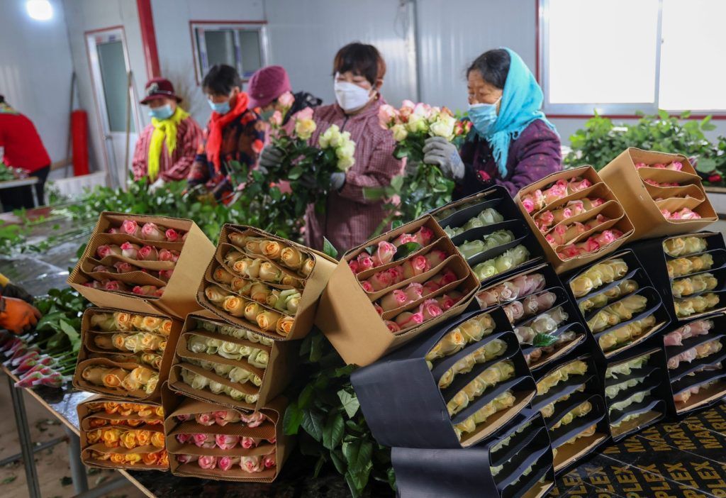 初冬的早晨,山东临沂兰山区的夏家村玫瑰产业园却是一片花团锦簇,工人们正在修剪、打包玫瑰,花卉即将远销海南、北京、天津等各大城市。“花卉产业年产值5亿元,人均增收3万多元。”夏家村社区党支部书记夏继长说。